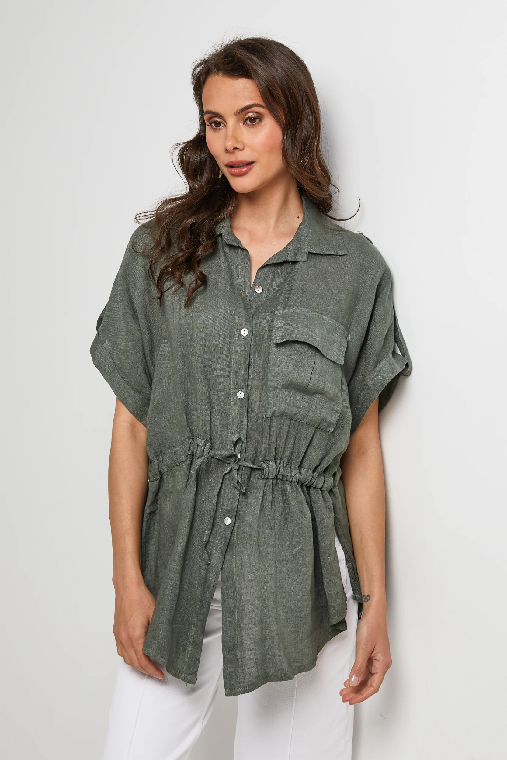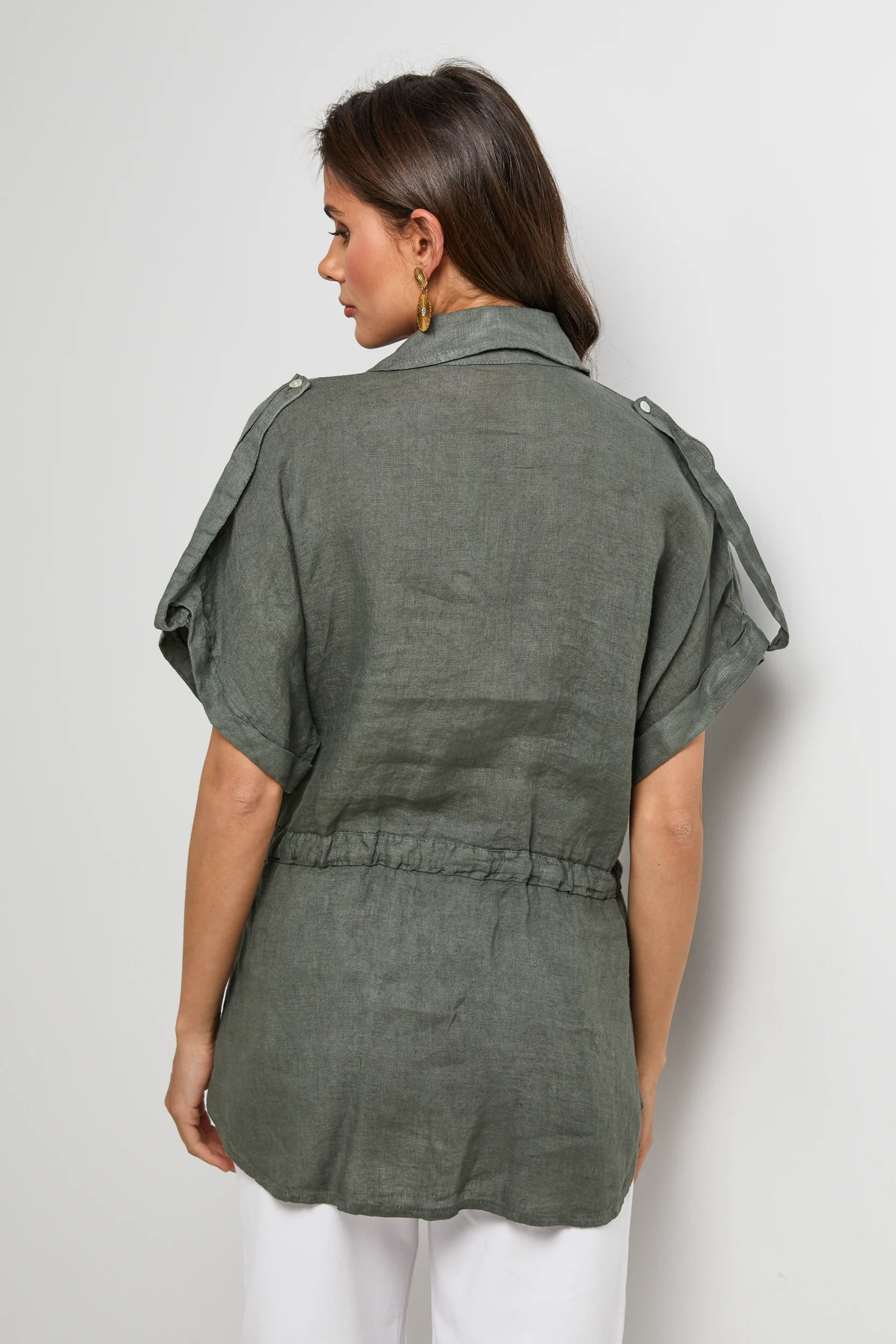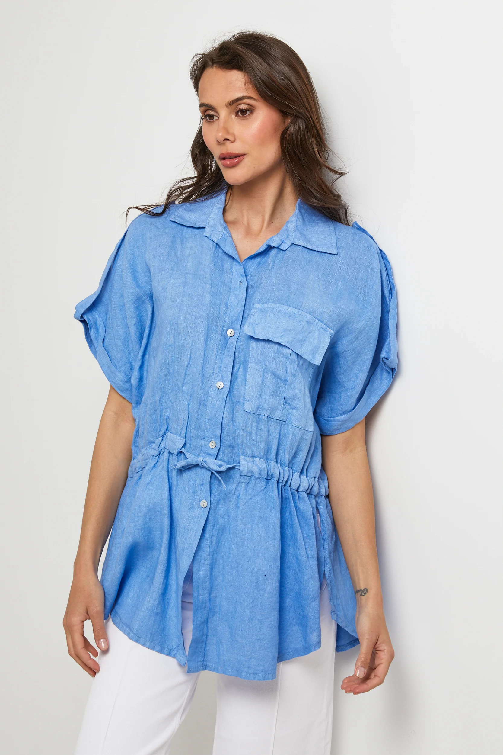Chemise manches courtes avec taille ajustable et une poche plaquée sur la poitrine100% LINLavage en machine, en dessous de 30 ° C