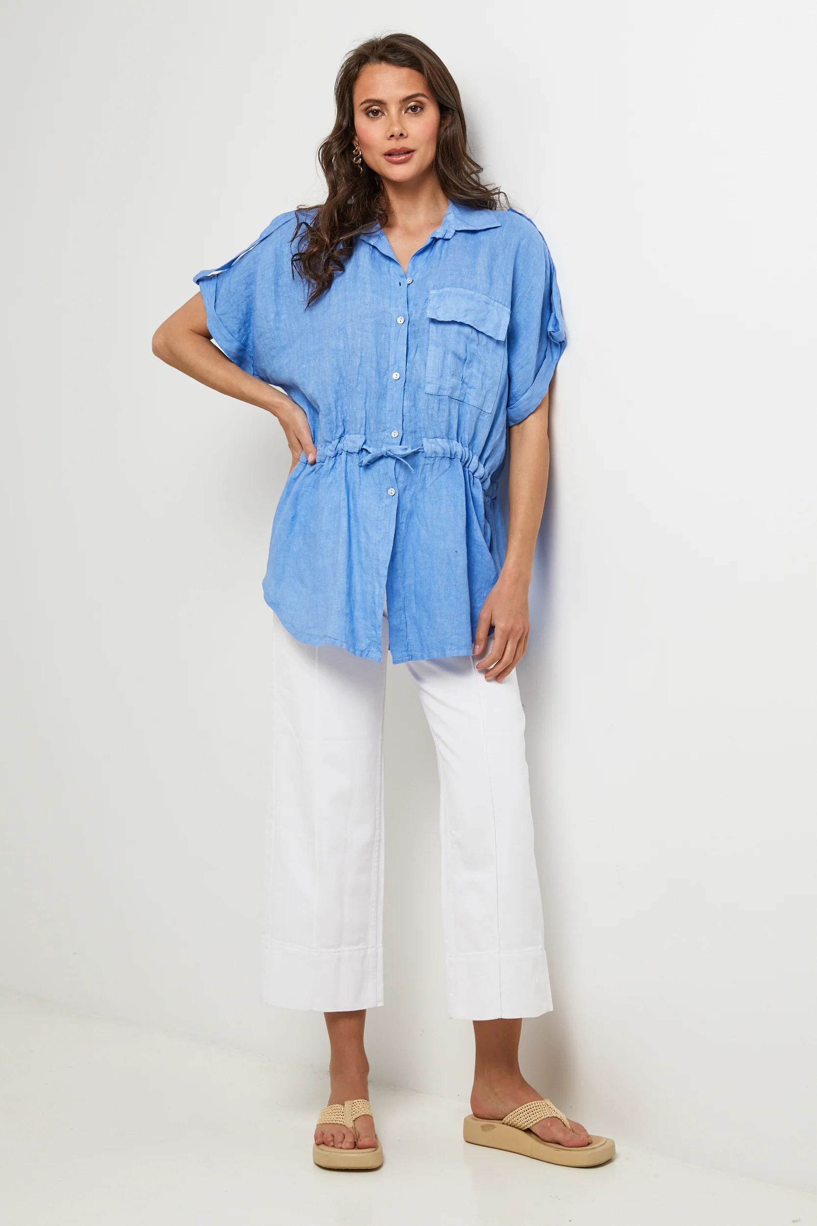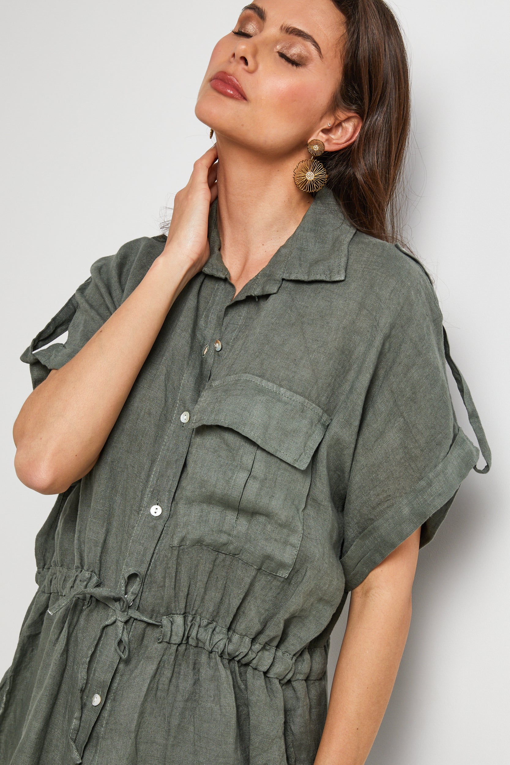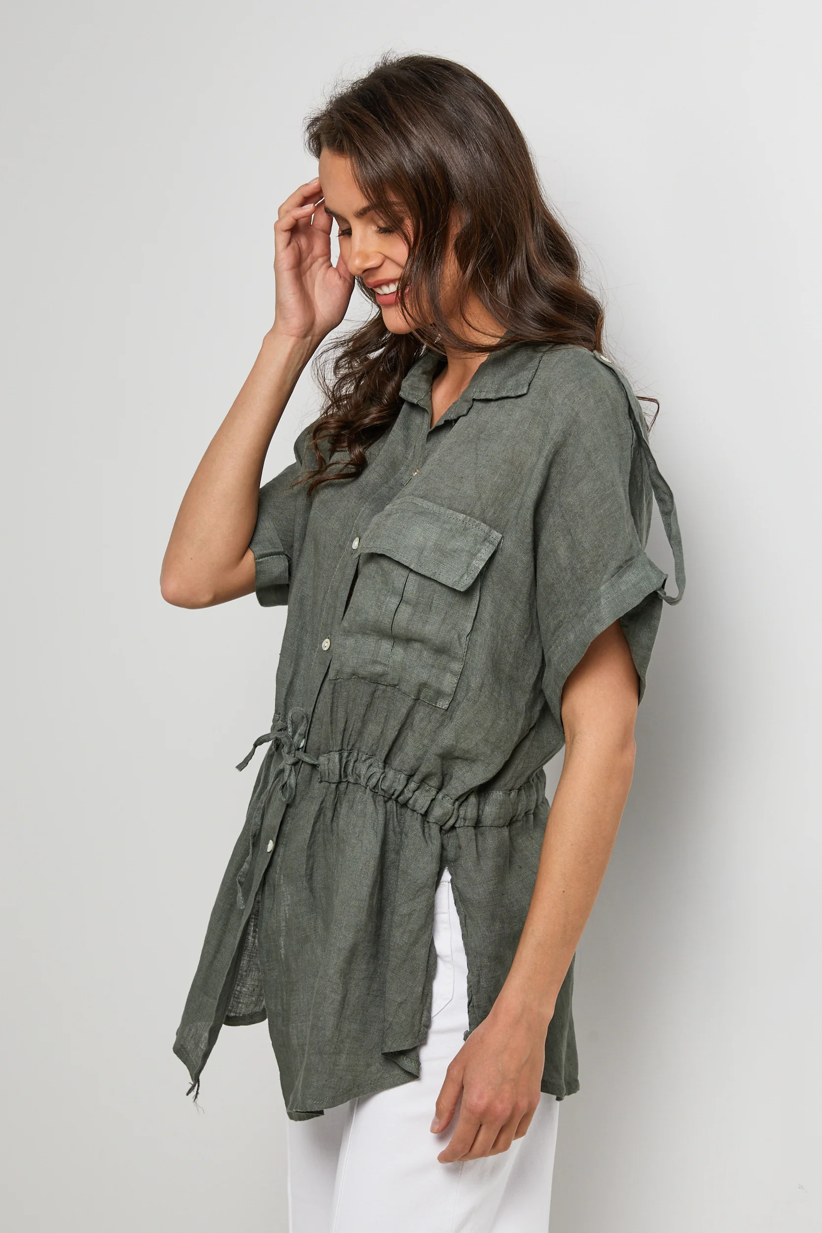 Chemise manches courtes avec taille ajustable et une poche plaquée sur la poitrine100% LINLavage en machine, en dessous de 30 ° C