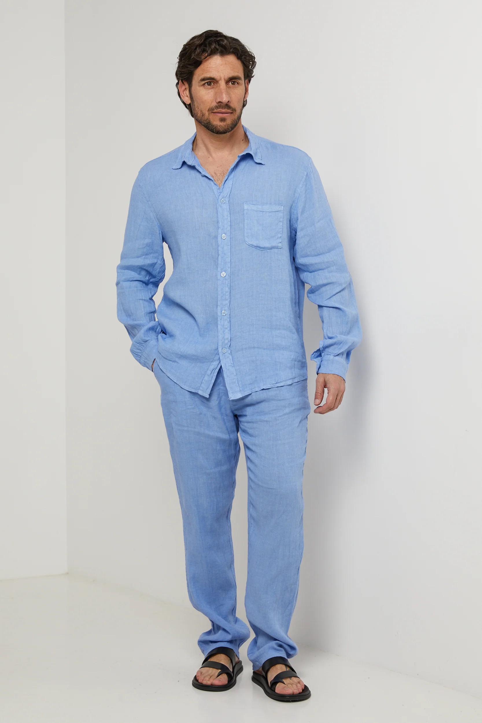 Chemise à manches longues et poche plaquée à niveau de la poitrine100% LINLavage en machine, en dessous de 30°