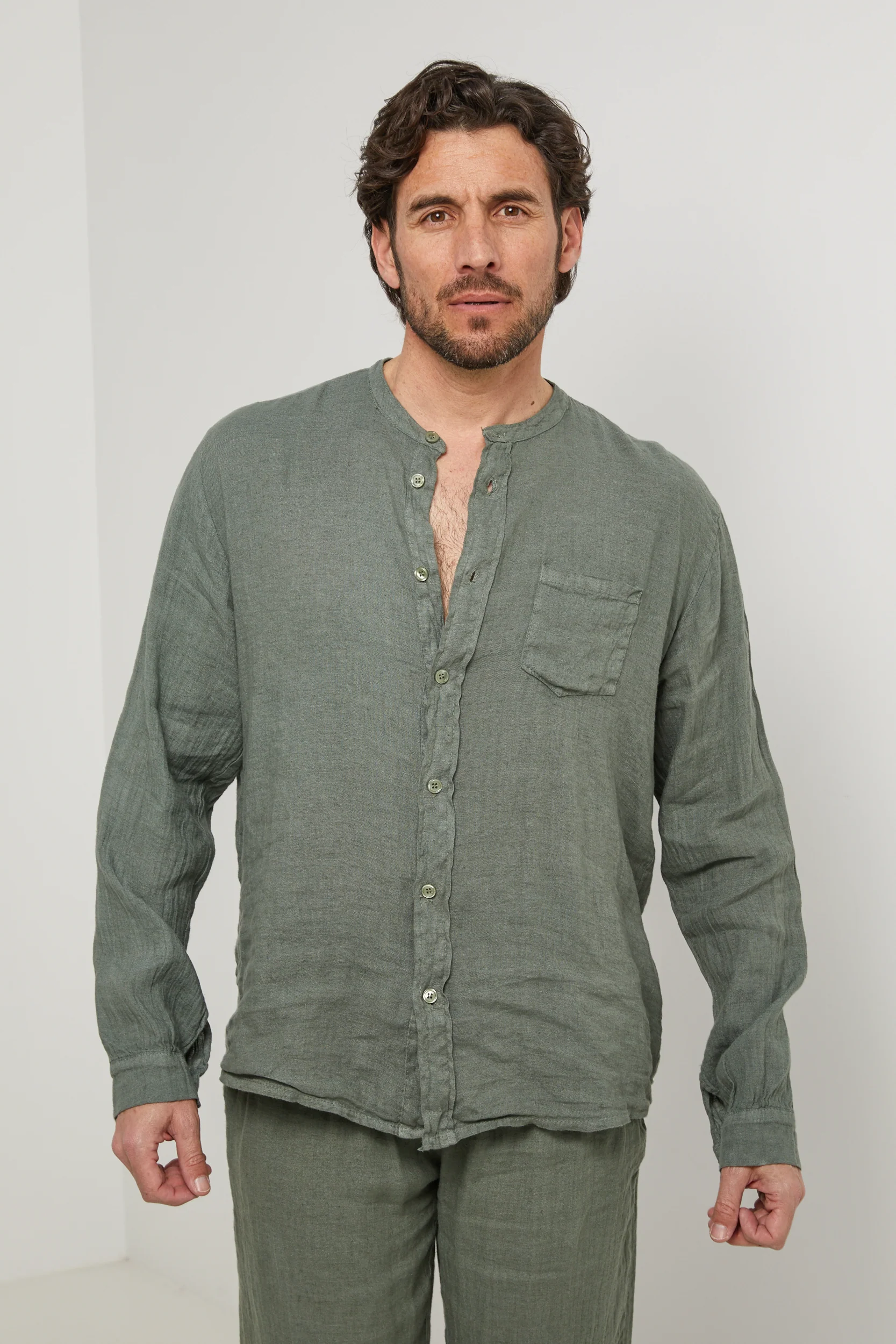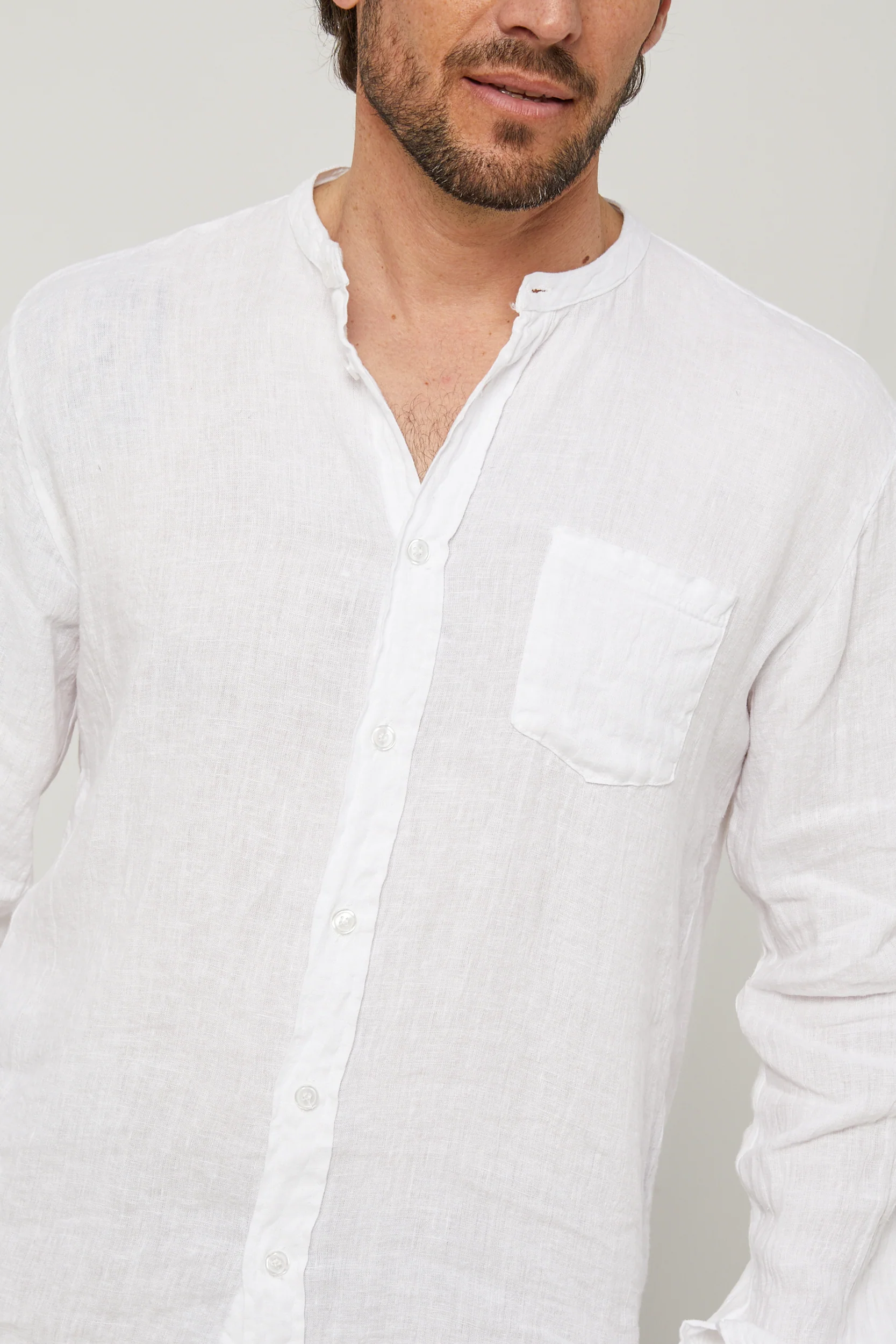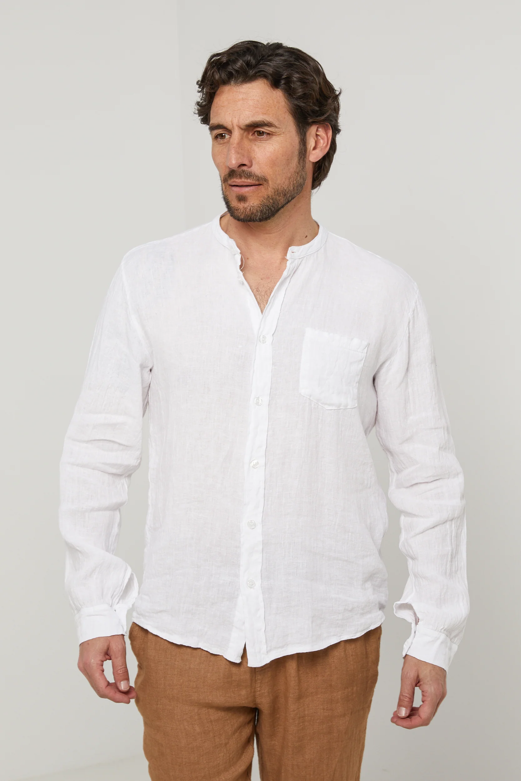 Chemise col mao, manches longues, poche plaquée sur la poitrine100% LINLavage en machine, en dessous de 30 ° C