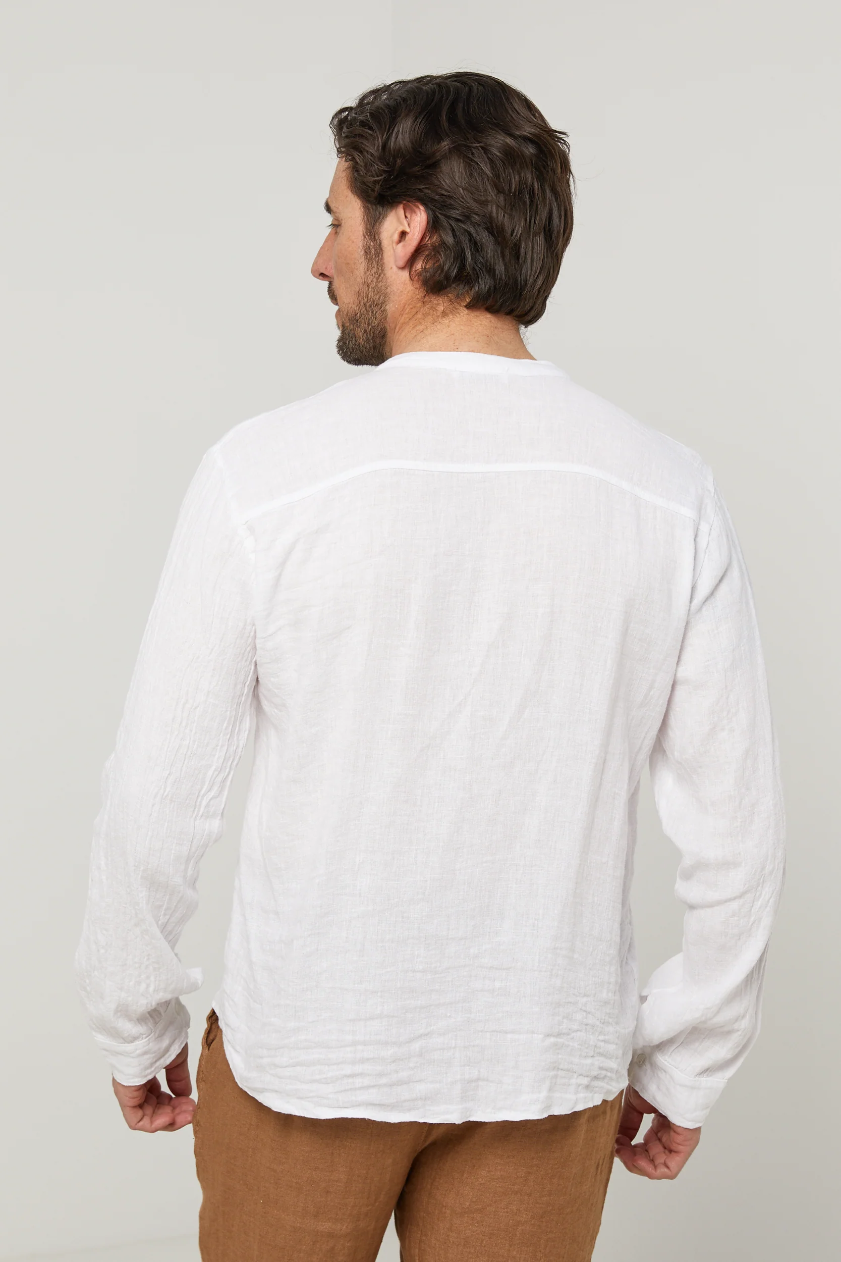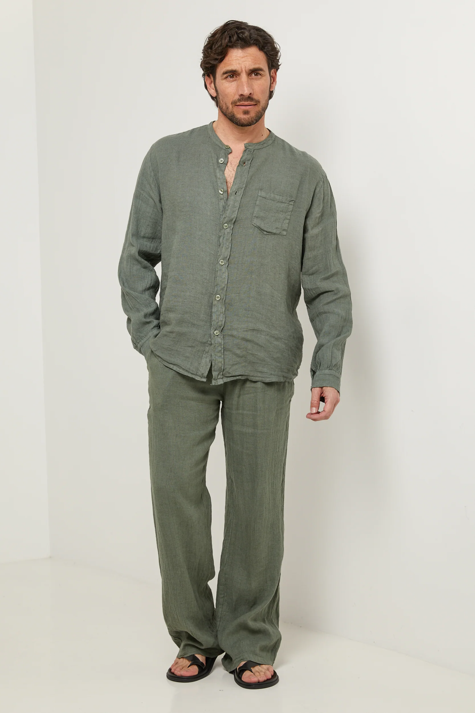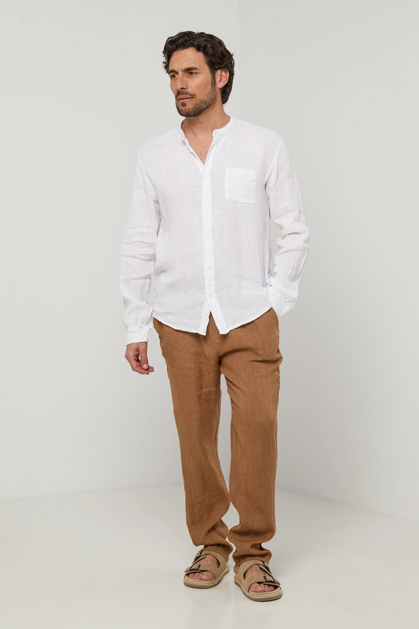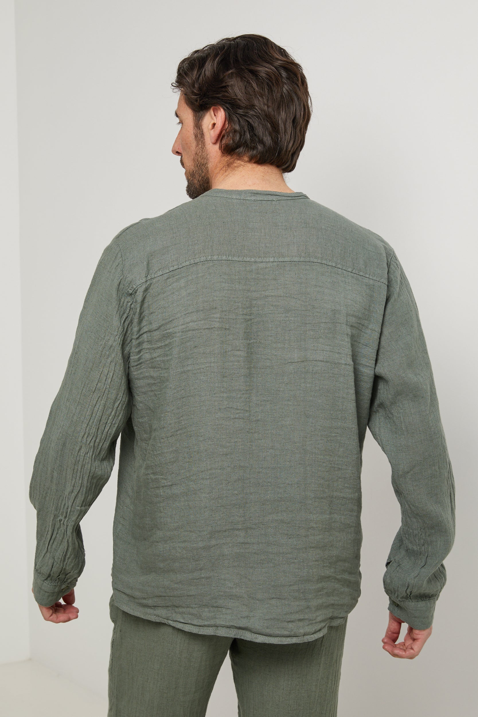 Chemise col mao, manches longues, poche plaquée sur la poitrine100% LINLavage en machine, en dessous de 30 ° C