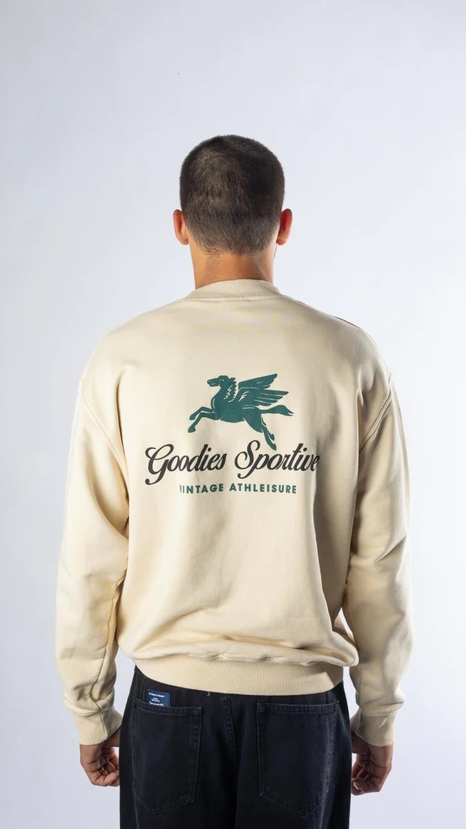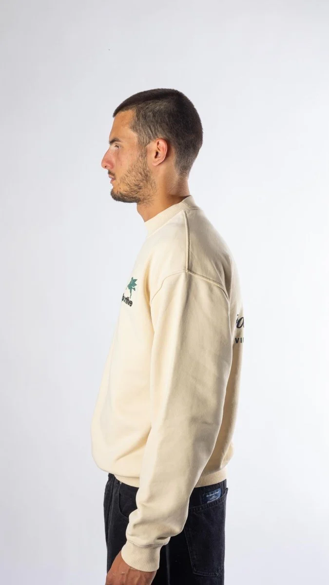 Le 550G Premium Hummus Crewneck est un sweatshirt premium en coton épais 550g, offrant une texture dense et un tombé structuré.