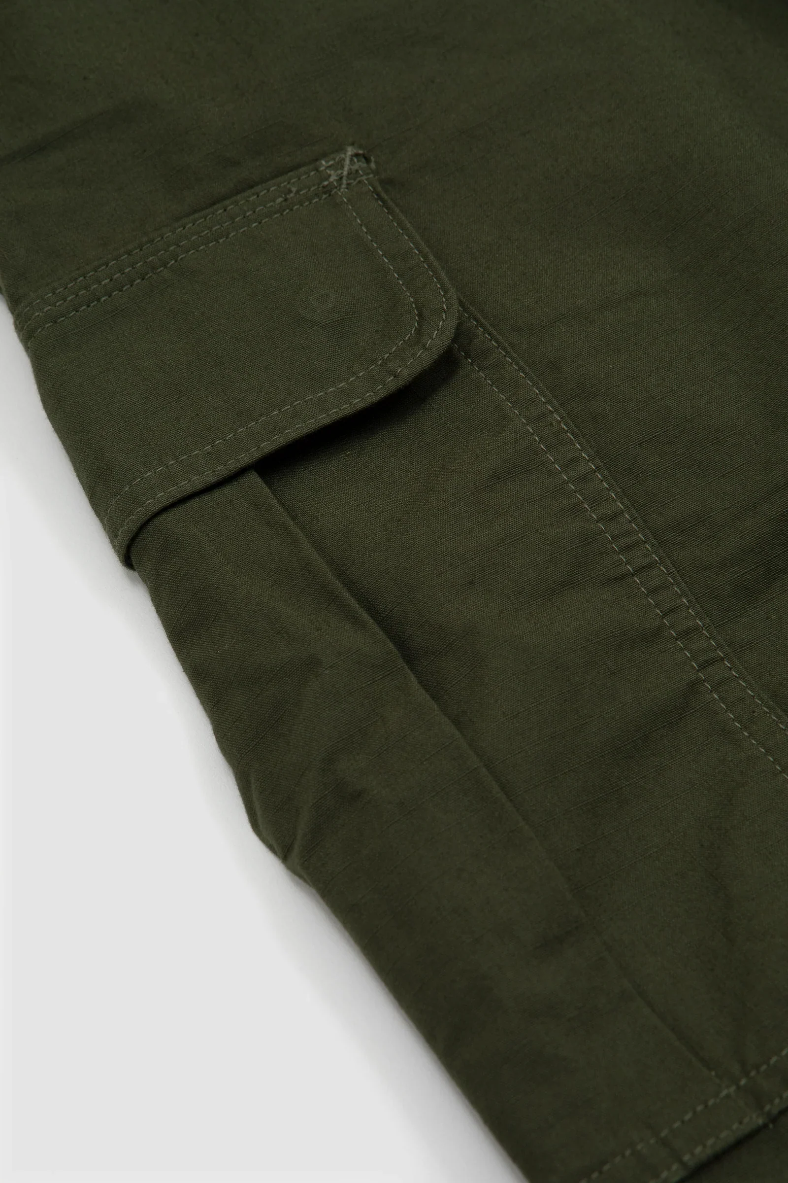 Ce pantalon cargo revisite l’allure utilitaire à travers une silhouette ample, façonnée dans un ripstop japonais léger. Les poches plissées et les pinces structurantes apportent fonctionnalité et distinction. Fabriqué au Japon avec un coton d’une grande finesse, il incarne une vision moderne du confort et du style quotidien.
