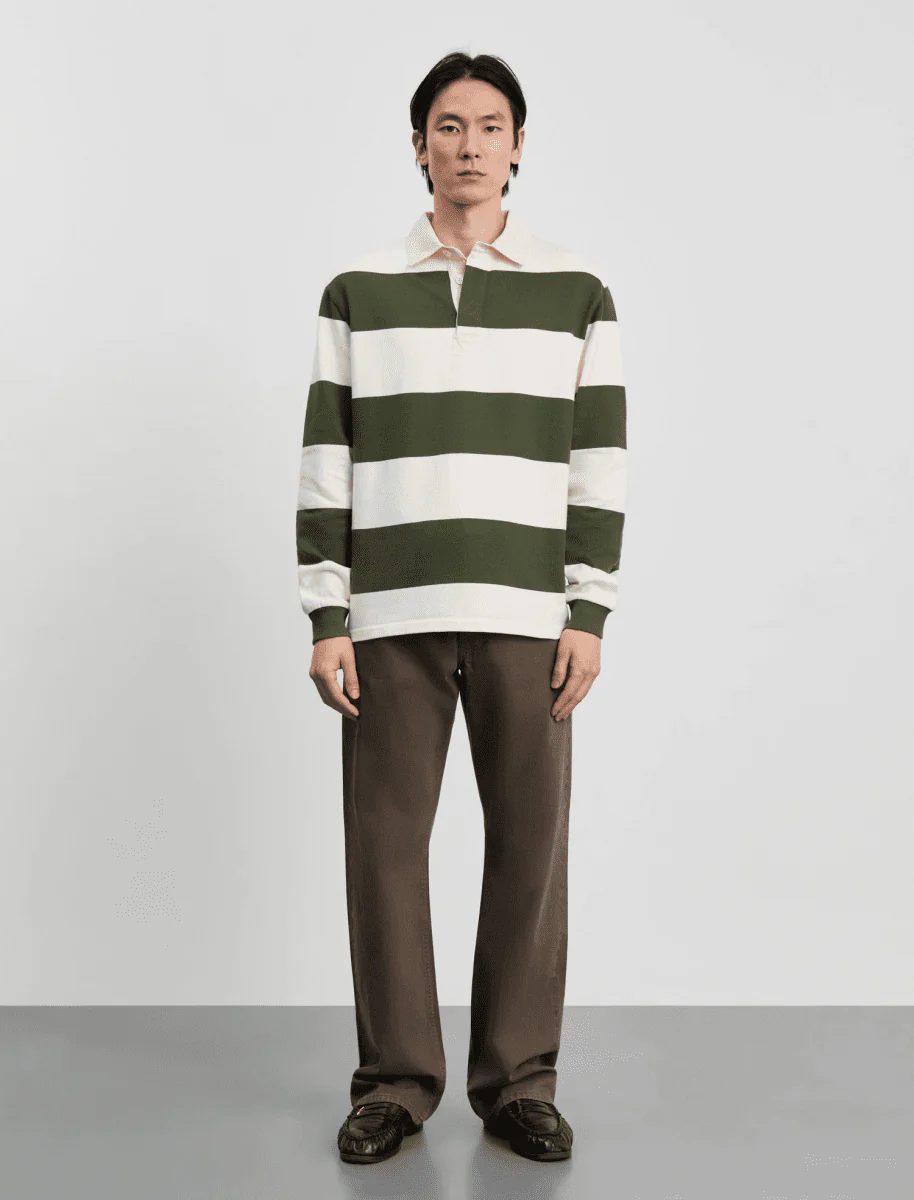 Another Rugby Polo 1.0 – Green Ecru Stripe
