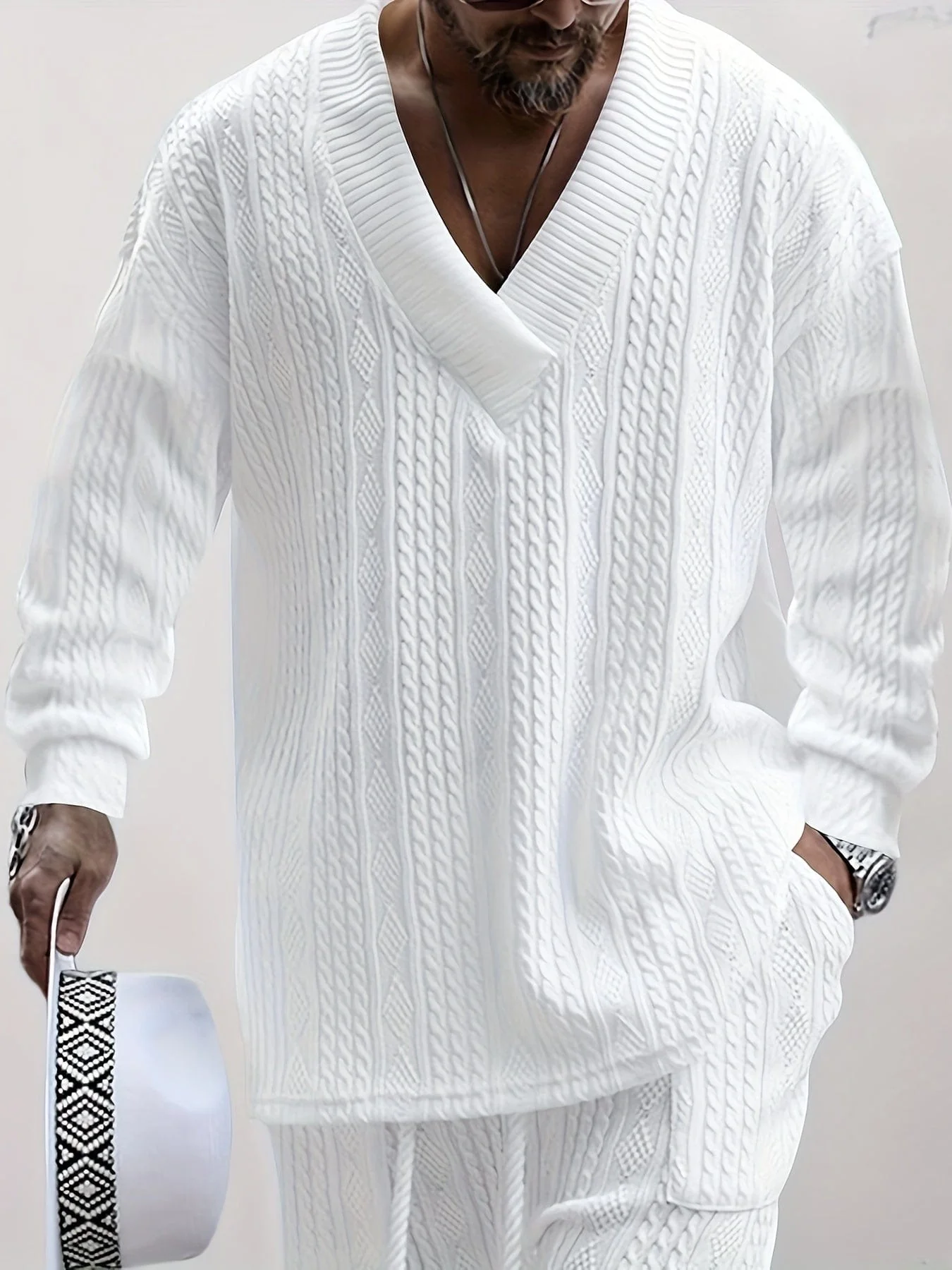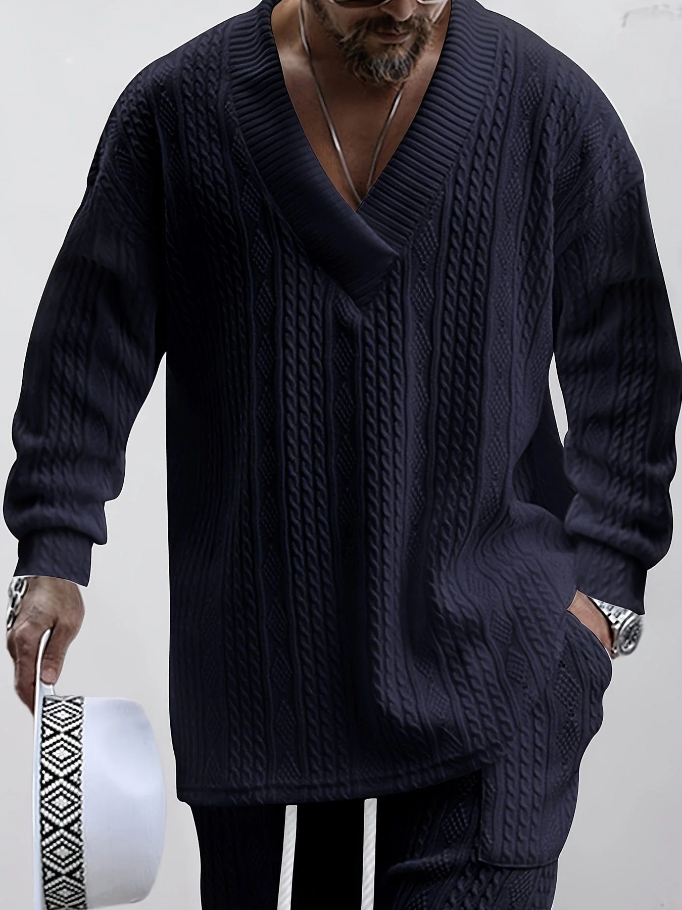 Style décontracté et tendance : Avec son col châle en V et son pantalon de jogging assorti, cet ensemble offre un look décontracté mais élégant, idéal pour les hommes soucieux de leur style, même pendant les mois les plus froids de l’année.