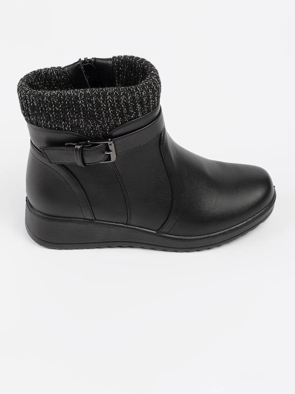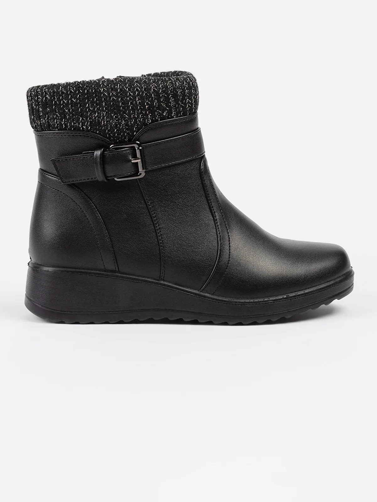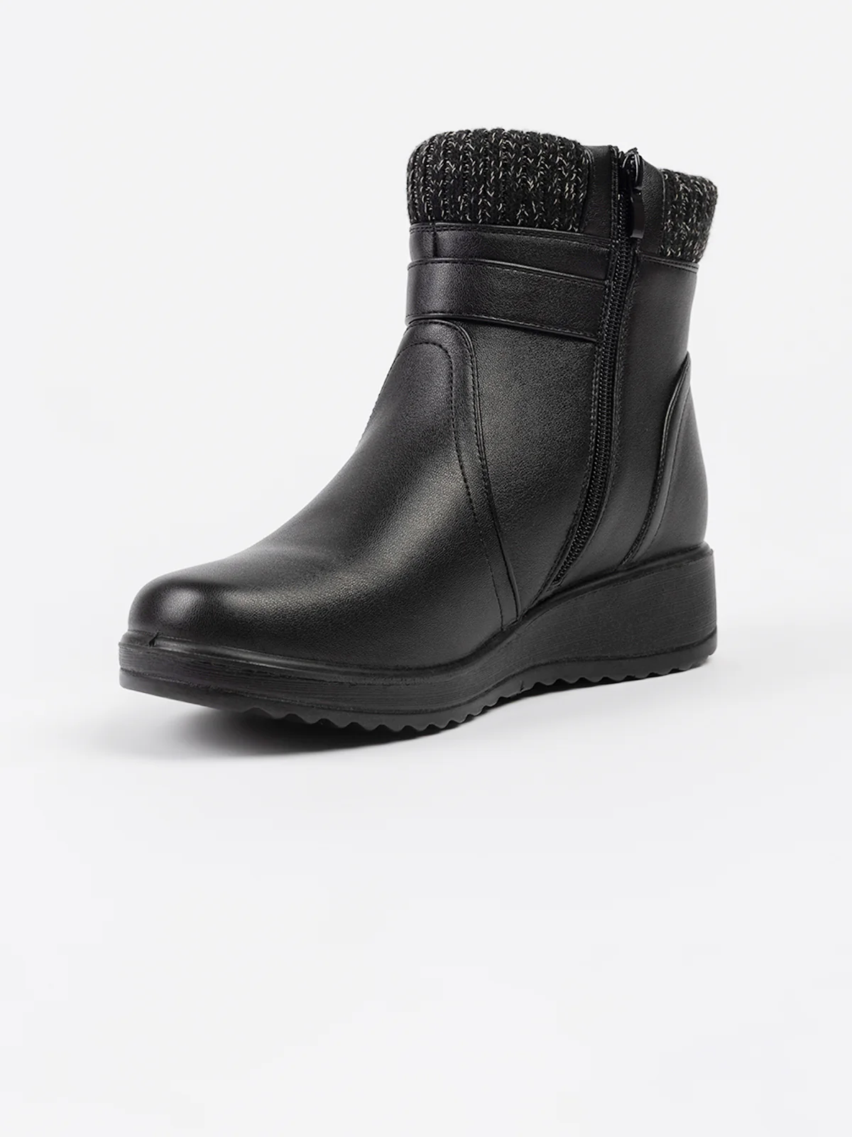 Bottes à rebords tricotés contrastés et patte décorative à boucle. Elles comprennent une fermeture zippée latérale pour un enfilage facile et semelle compensée antidérapante.
