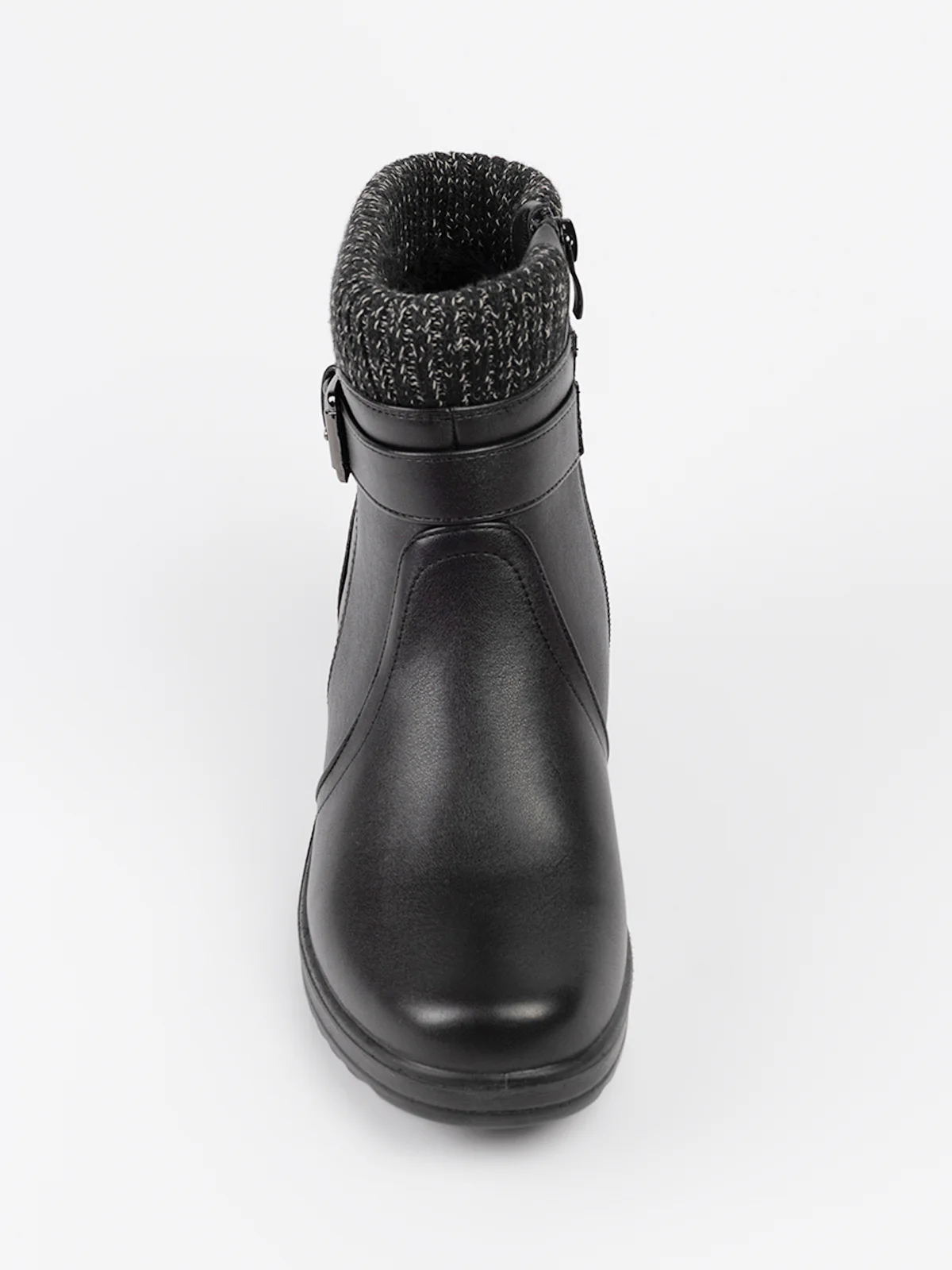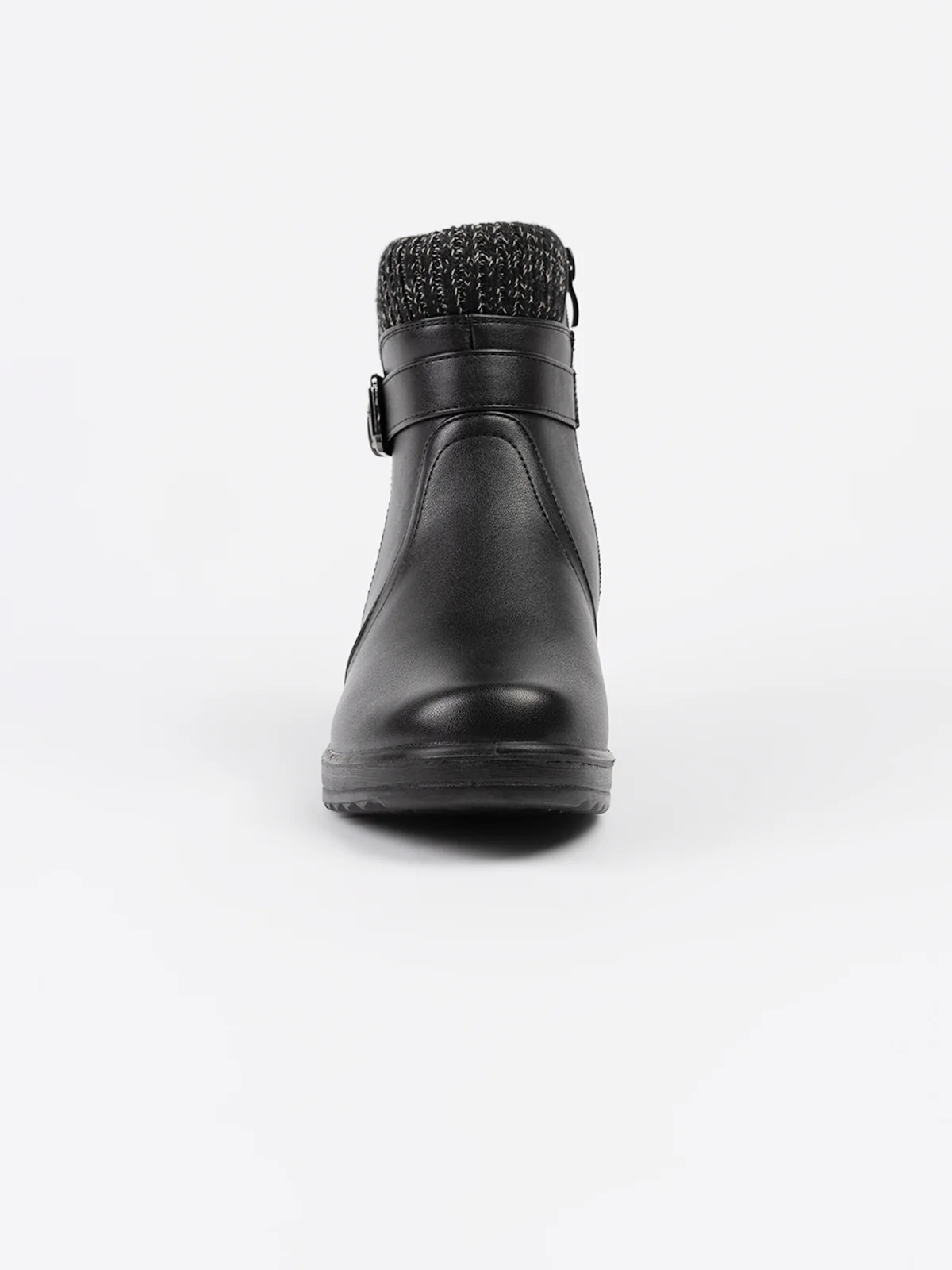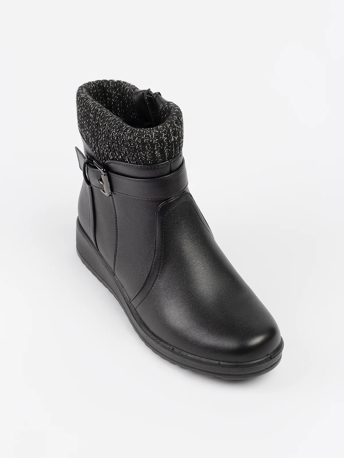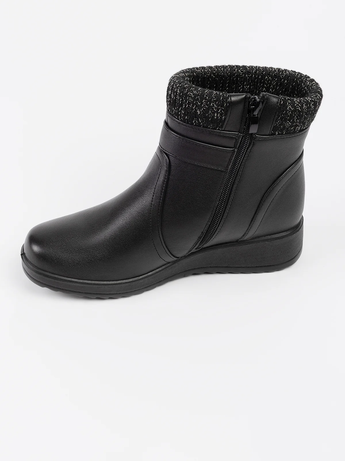 Bottes à rebords tricotés contrastés et patte décorative à boucle. Elles comprennent une fermeture zippée latérale pour un enfilage facile et semelle compensée antidérapante.
