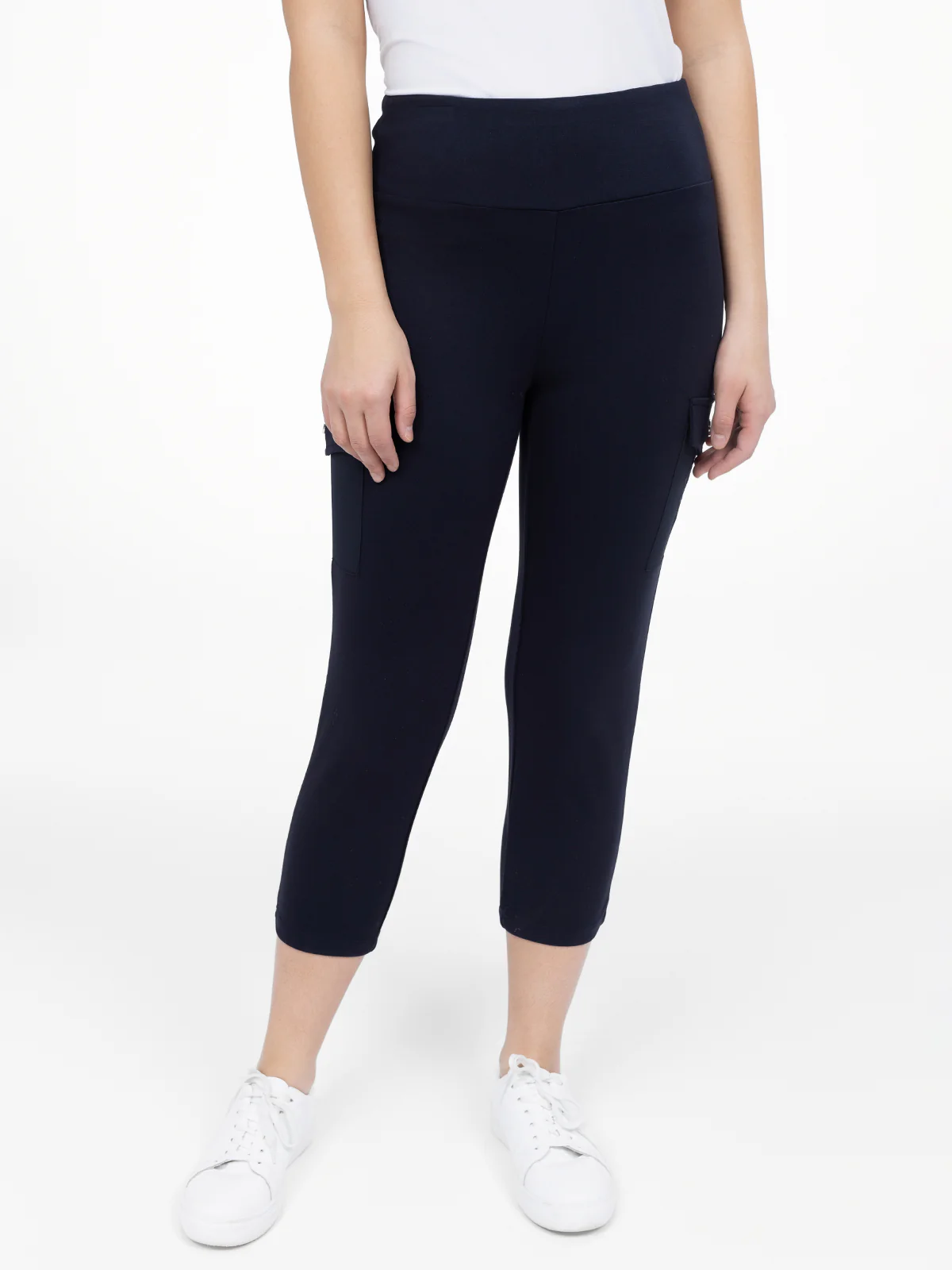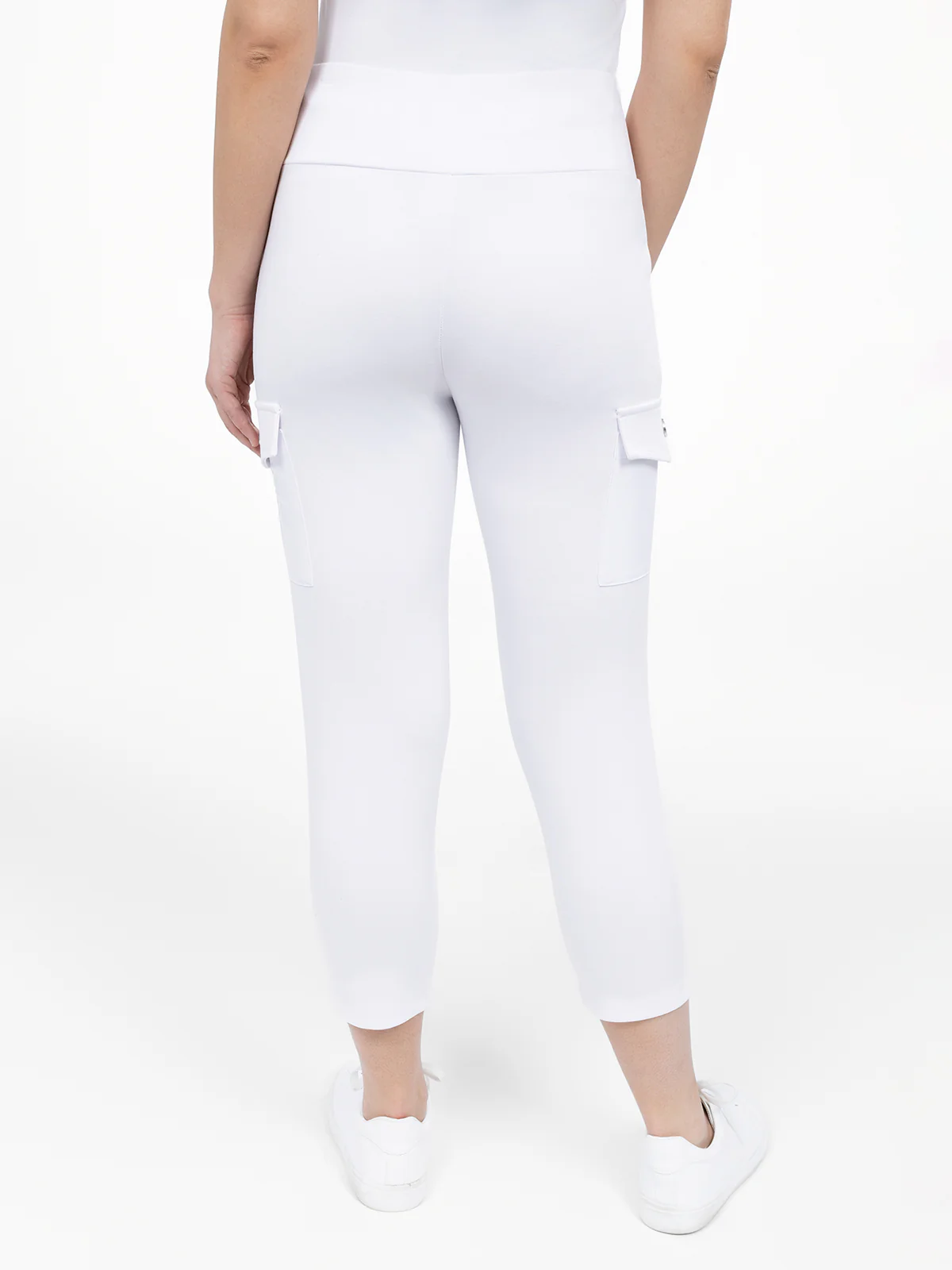 Ce pantalon droit en tricot extensible Ponte de Roma offre une coupe pull-on facile à enfiler. Sa longueur aux mollets, sa bande de taille élastique intérieure et ses poches cargo brodées ajoutent une touche fonctionnelle et tendance.