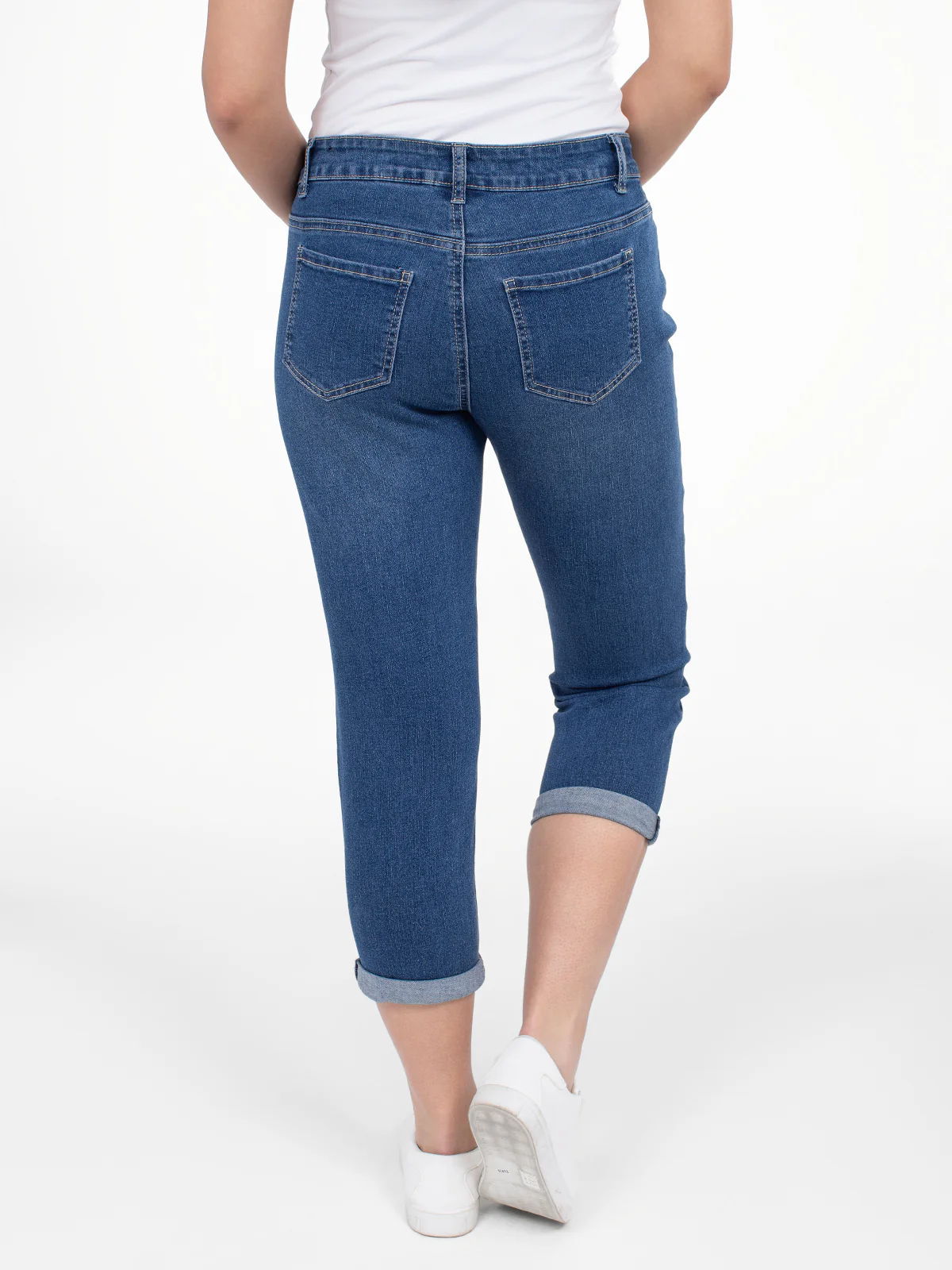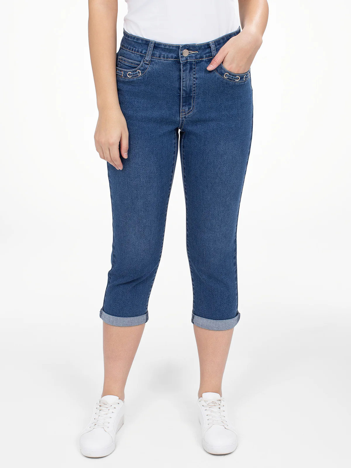 Avec sa longueur sous le genou et ses détails simples, ce capri en denim s’accorde parfaitement à tous vos hauts préférés. Un basique incontournable au charme intemporel.