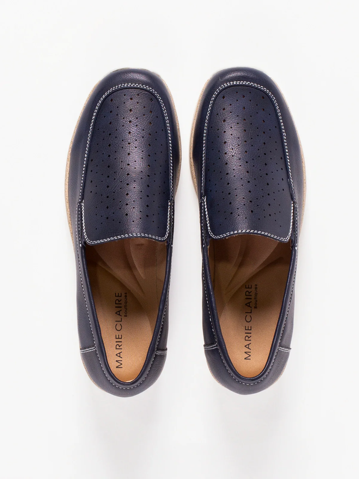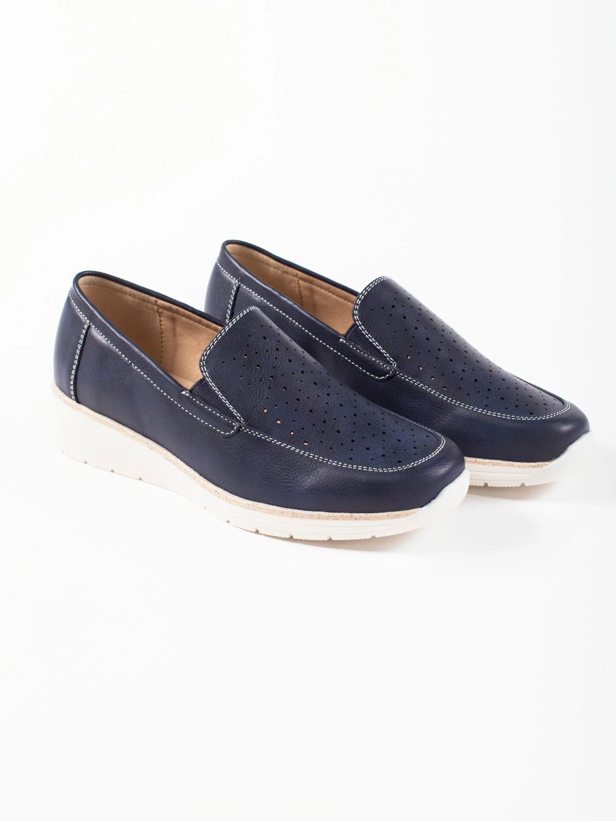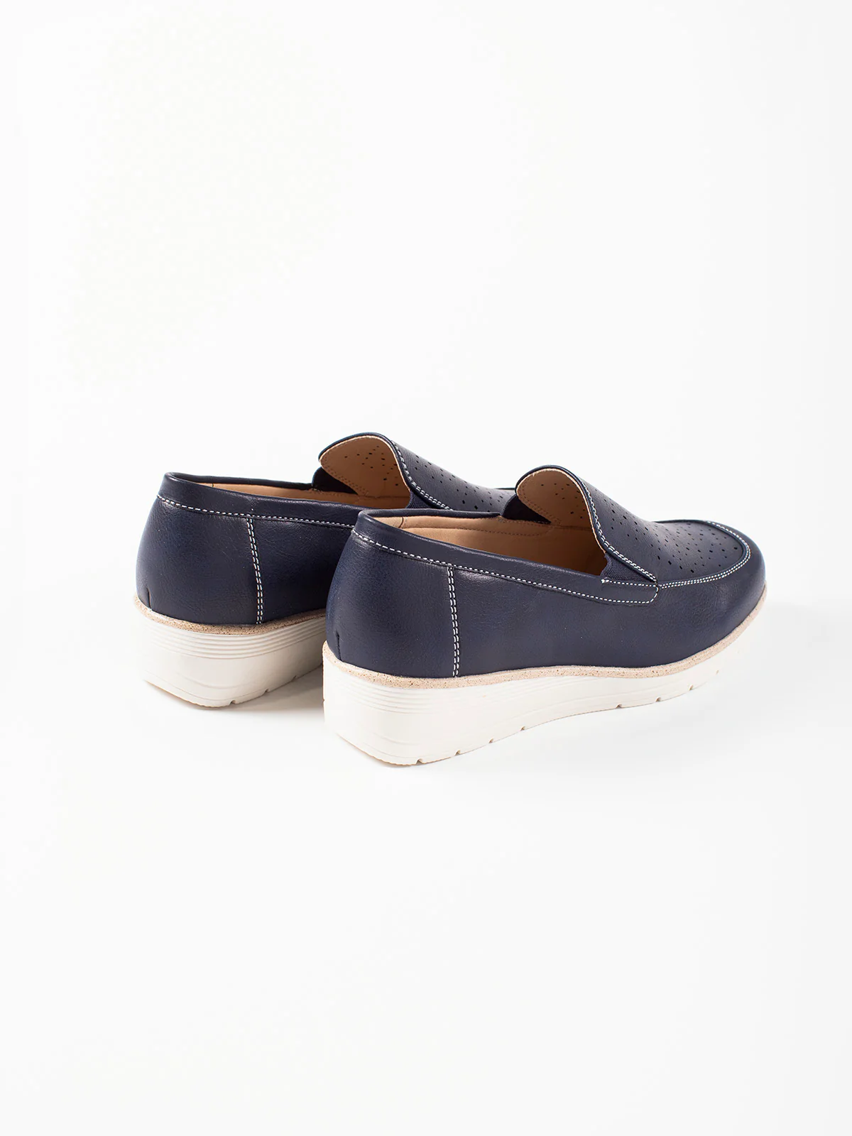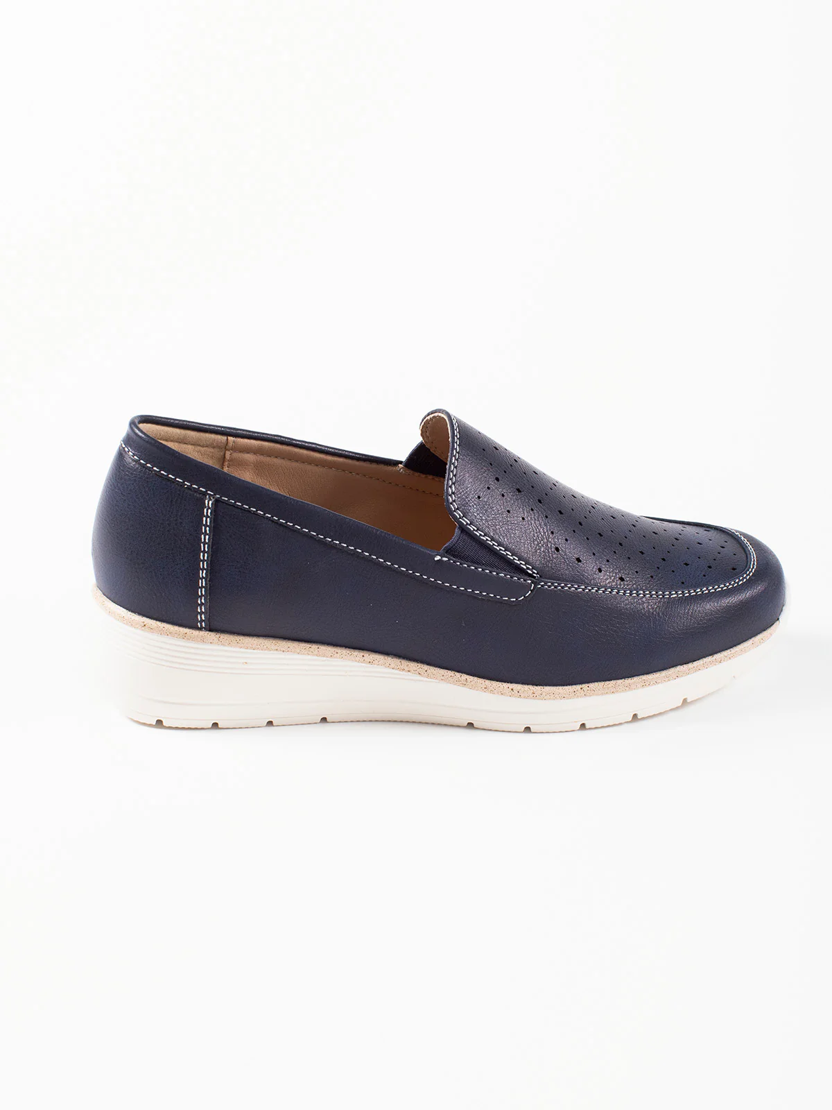 Tige lisse soulignée de surpiqûres claires et perforations discrètes : une silhouette affûtée sur une semelle crantée ivoire.