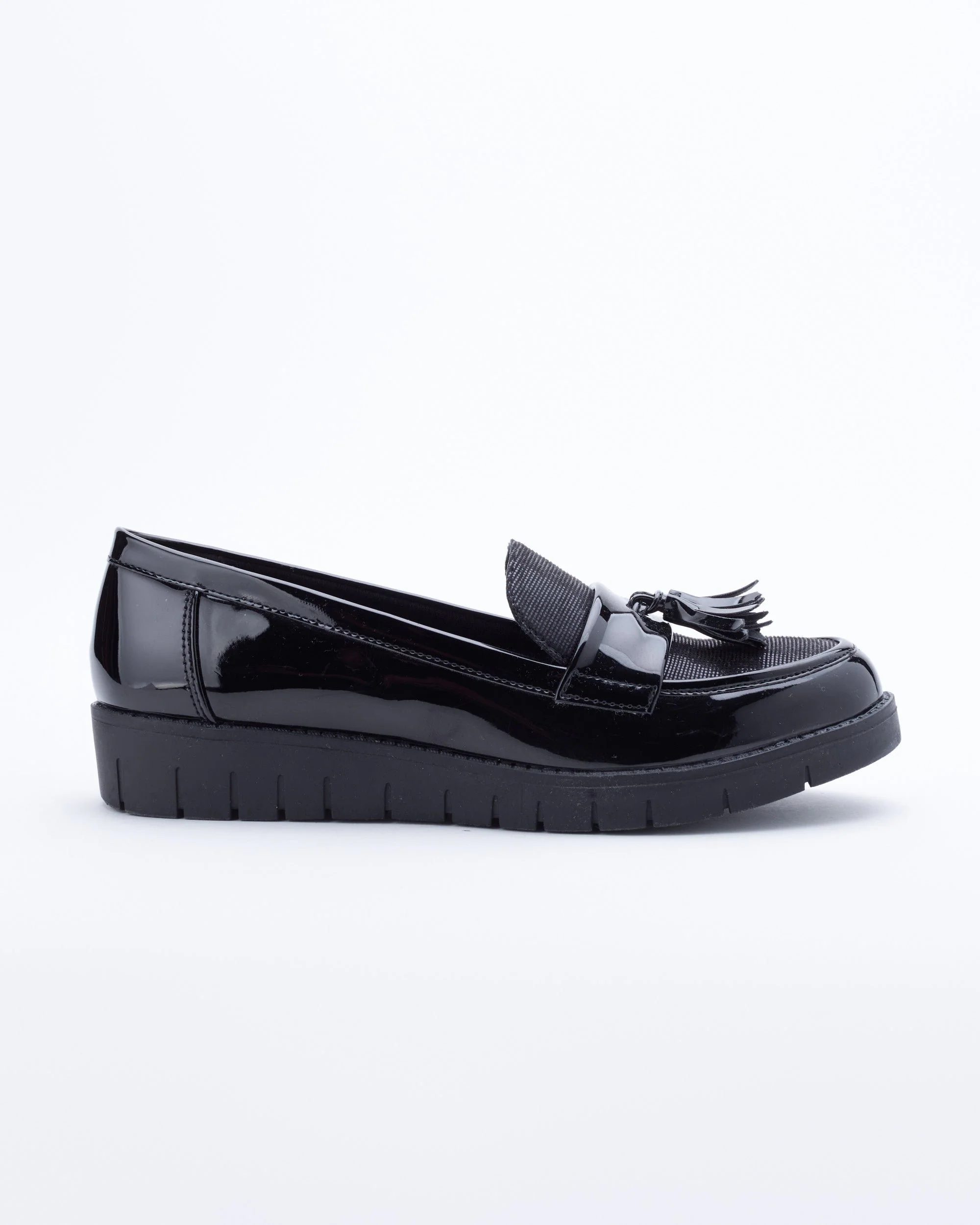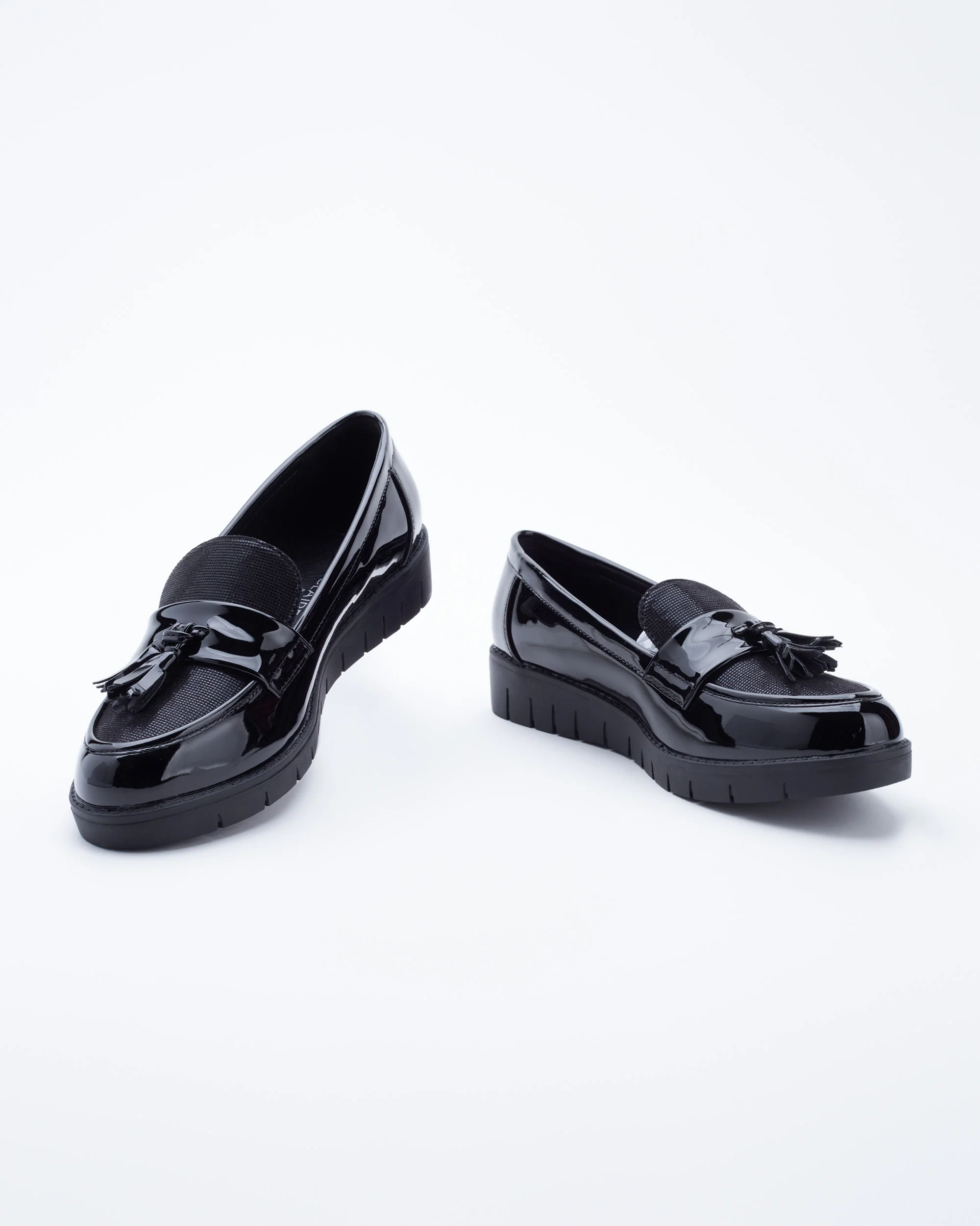 Chaussures à talon plat pour un look classique et facile à porter. Réalisées en cuir noir verni pour un effet subtil et discret, elles s’harmoniseront avec toutes les tenues de votre garde-robe.