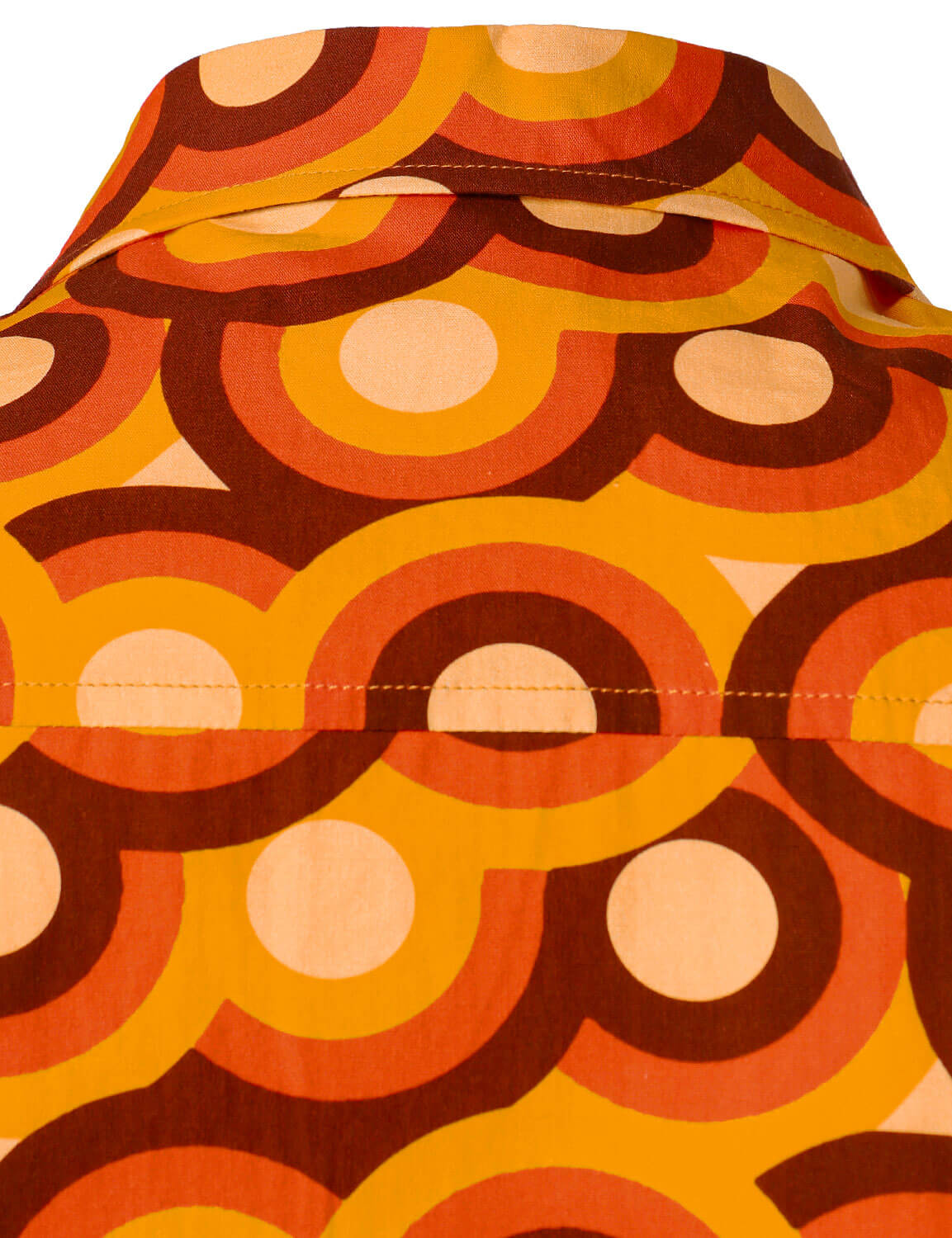 Chemise à manches longues à boutons rétro orange des années 70 pour homme, motif géométrique vintage
