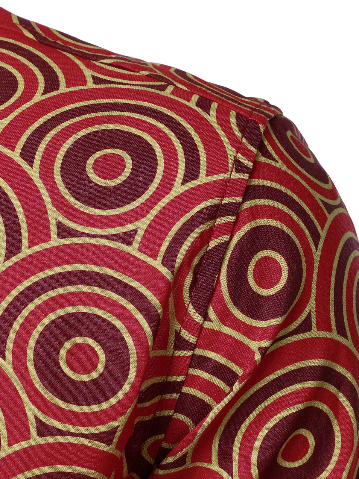 Chemise à manches longues à imprimé géométrique rond en coton rétro des années 70 pour homme