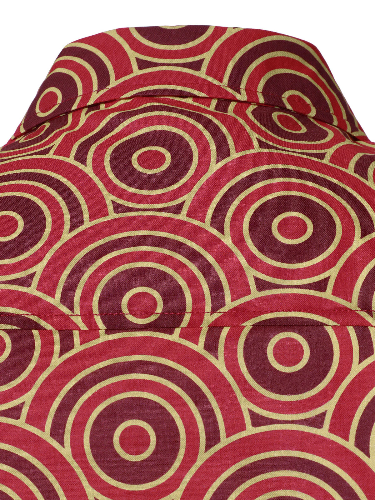 Chemise à manches longues à imprimé géométrique circulaire des années 70 pour homme