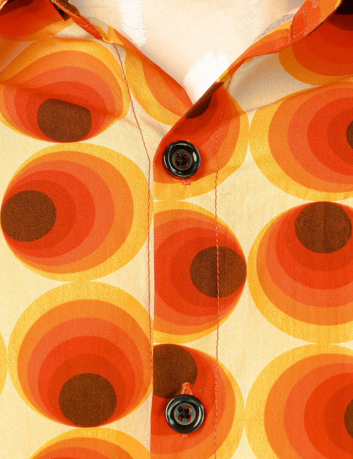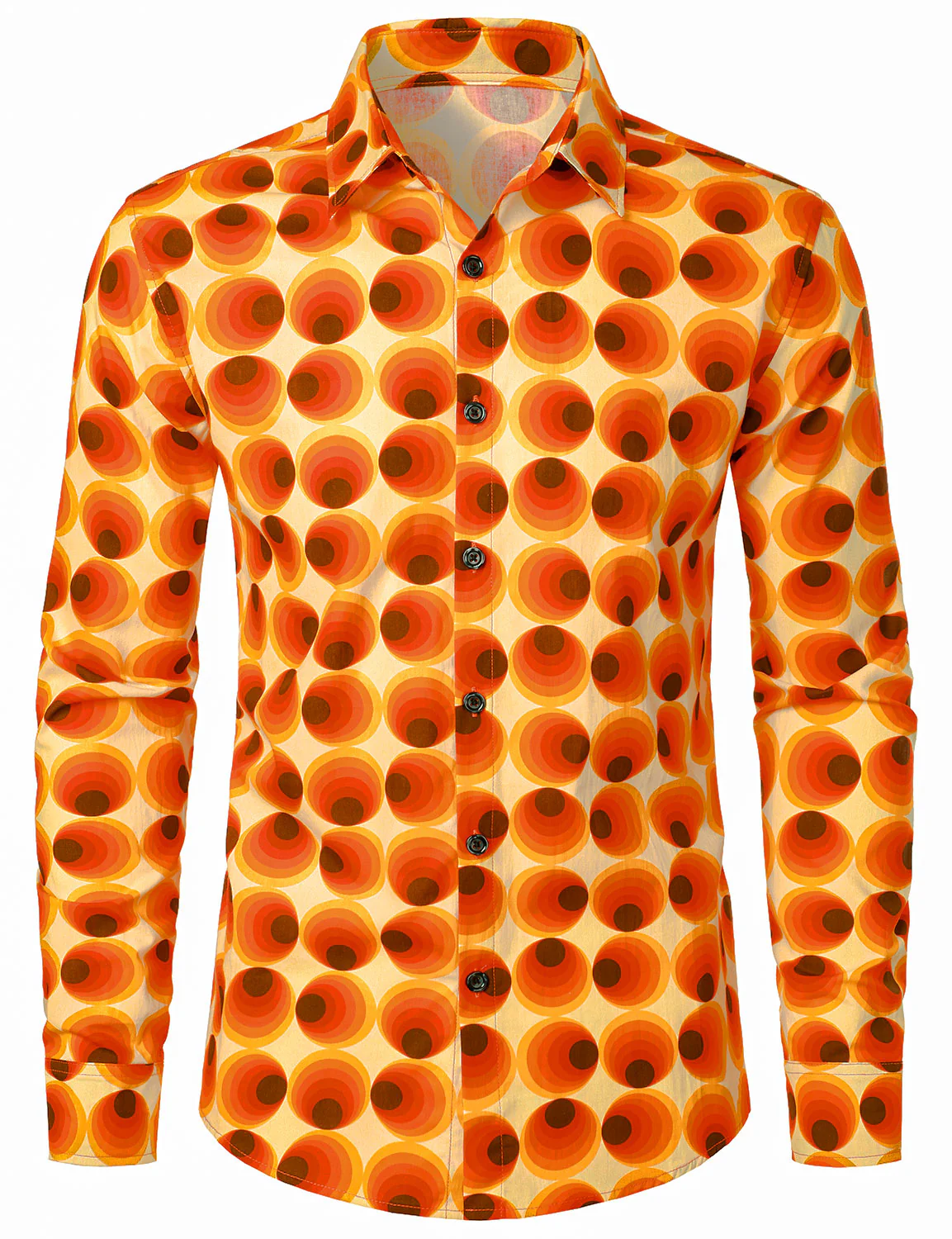 Chemise à manches longues à imprimé géométrique circulaire des années 70 pour homme
