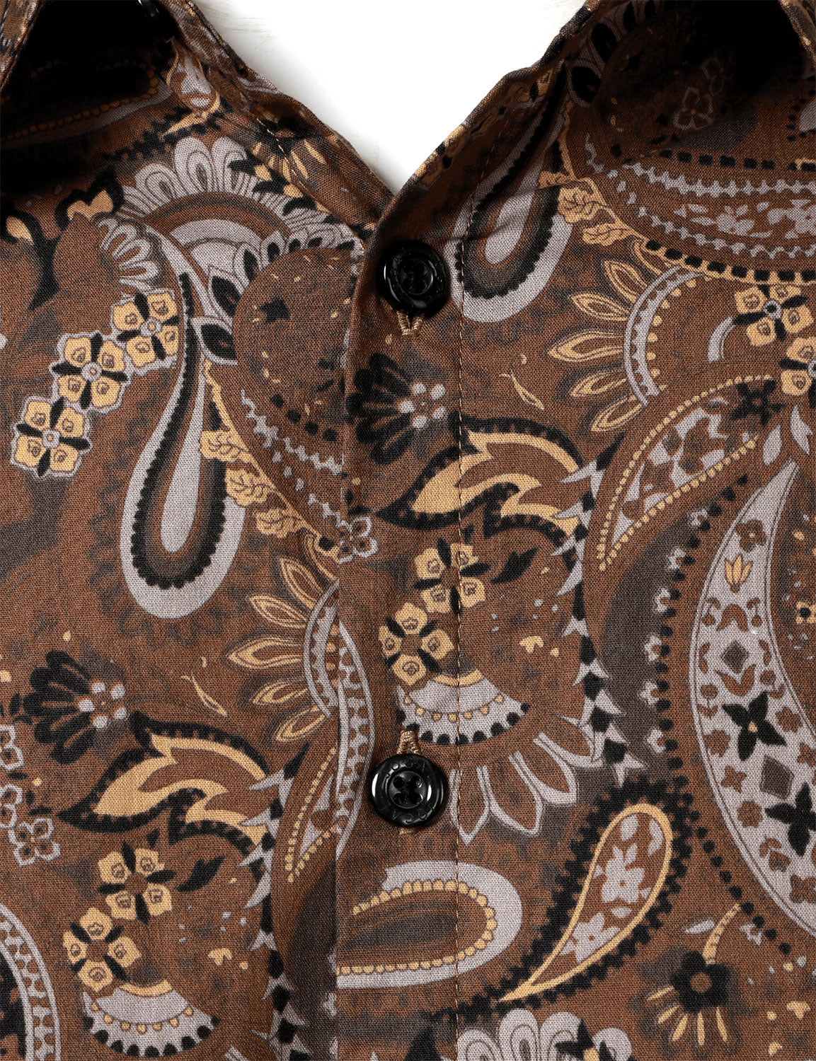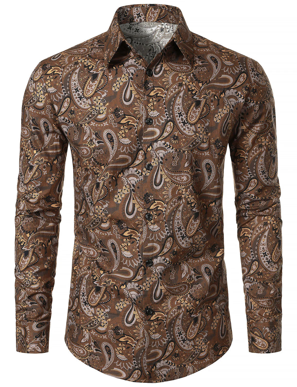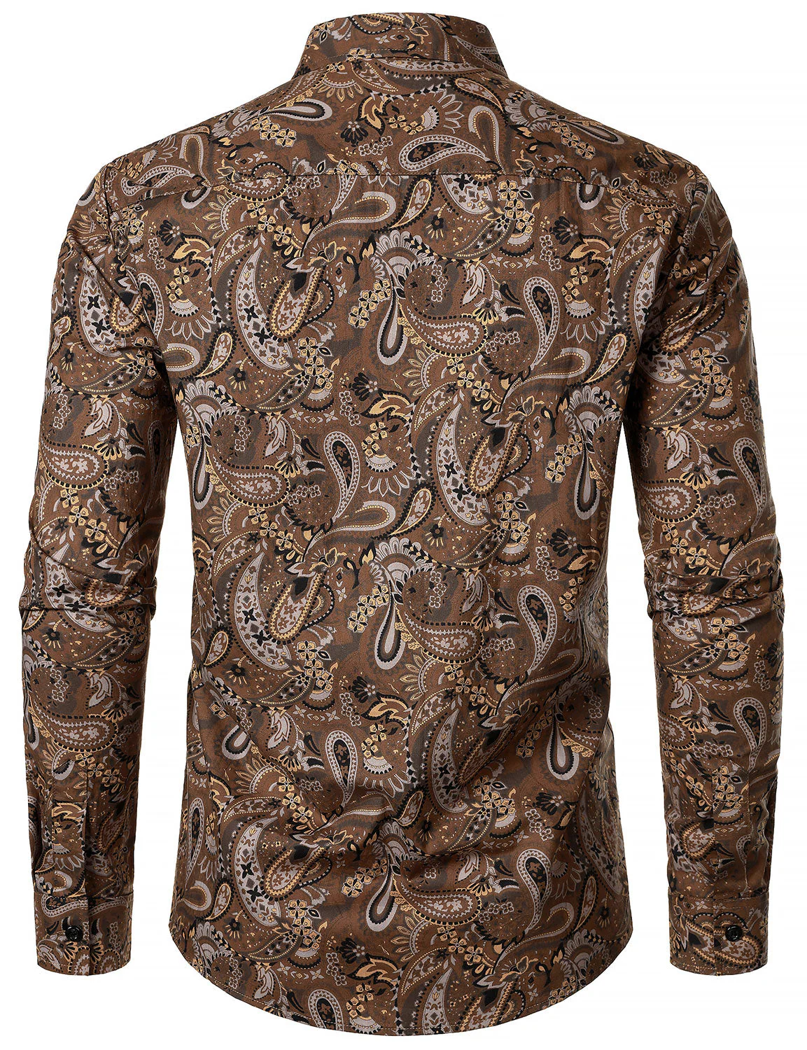 Chemise à manches longues en coton respirant marron à imprimé cachemire rétro pour homme