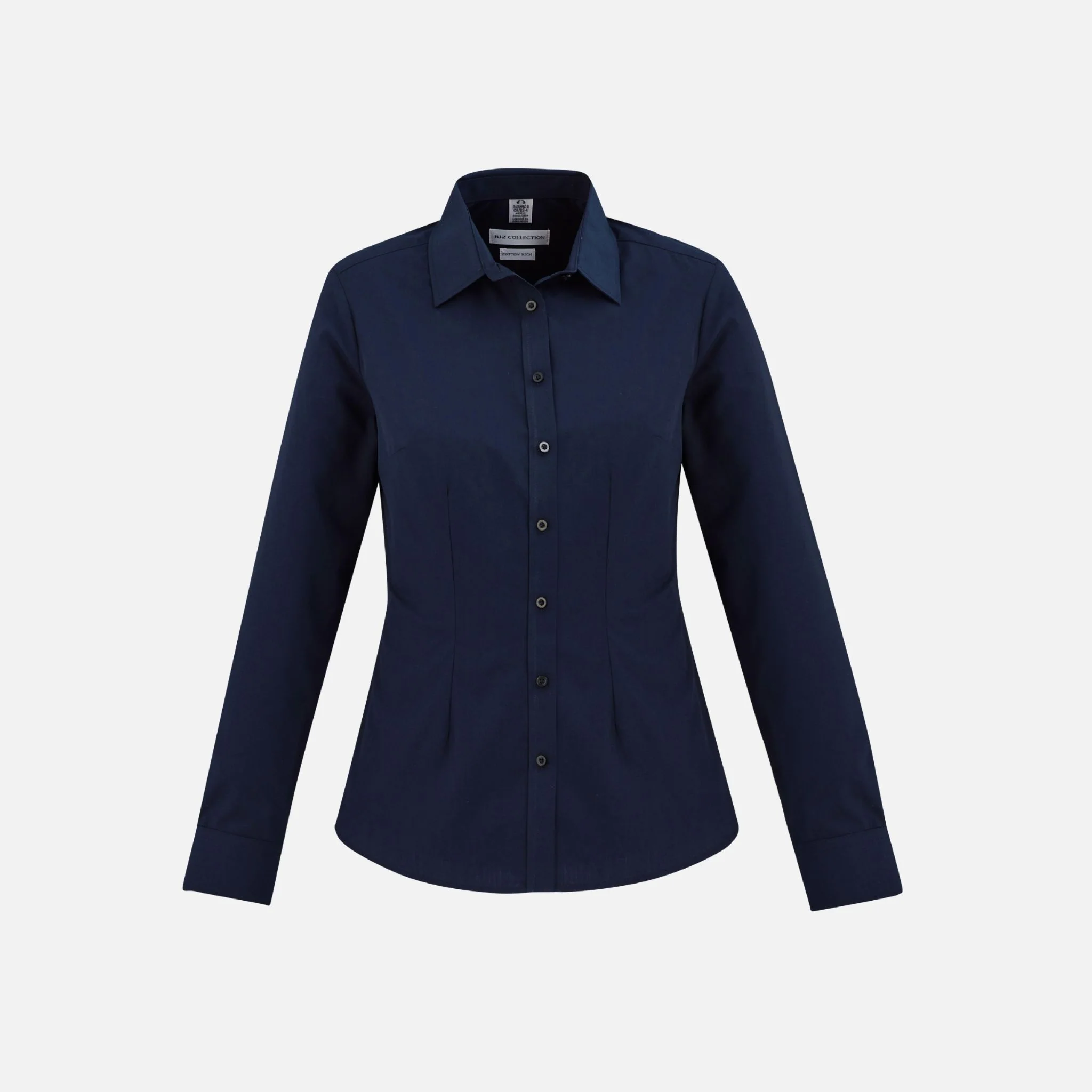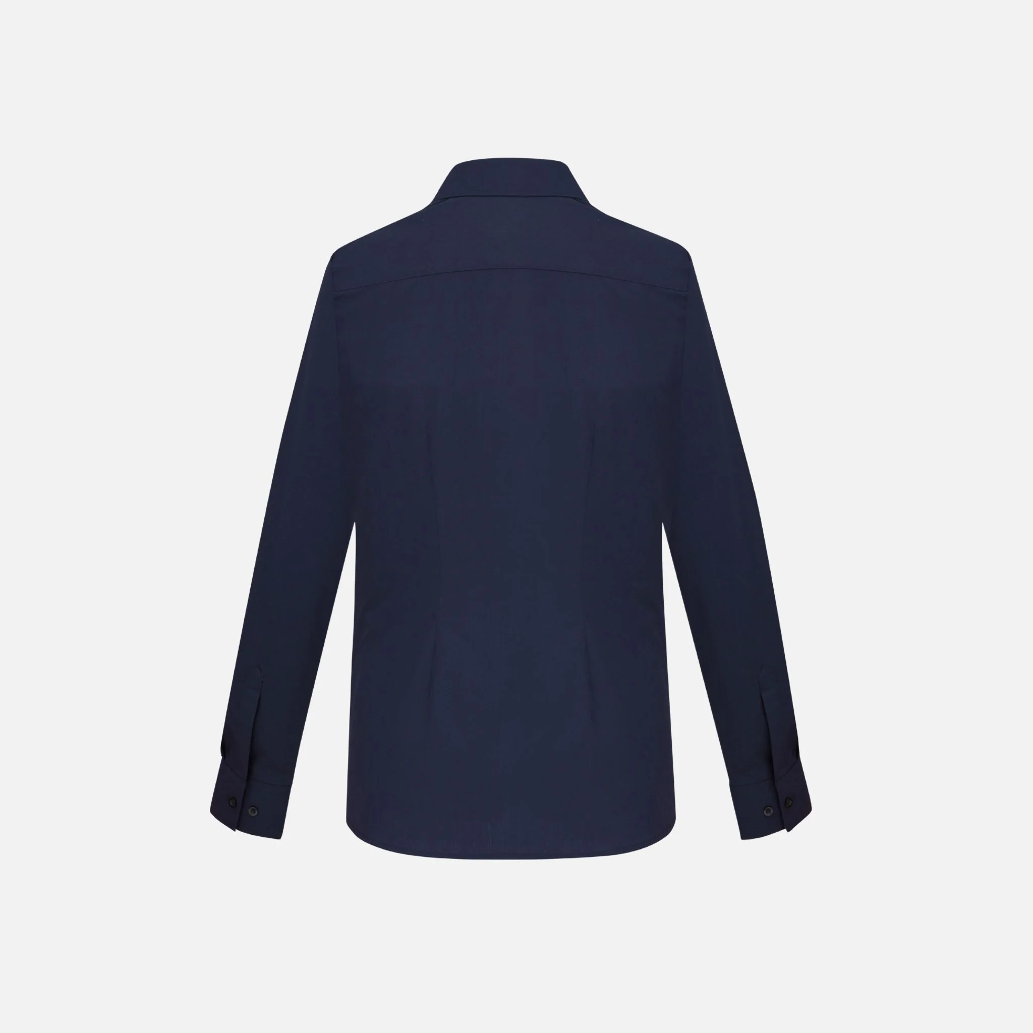 - Coupe féminine et détails soignés : pinces poitrine/taille, ourlet arrondi et patte boutonnée propre