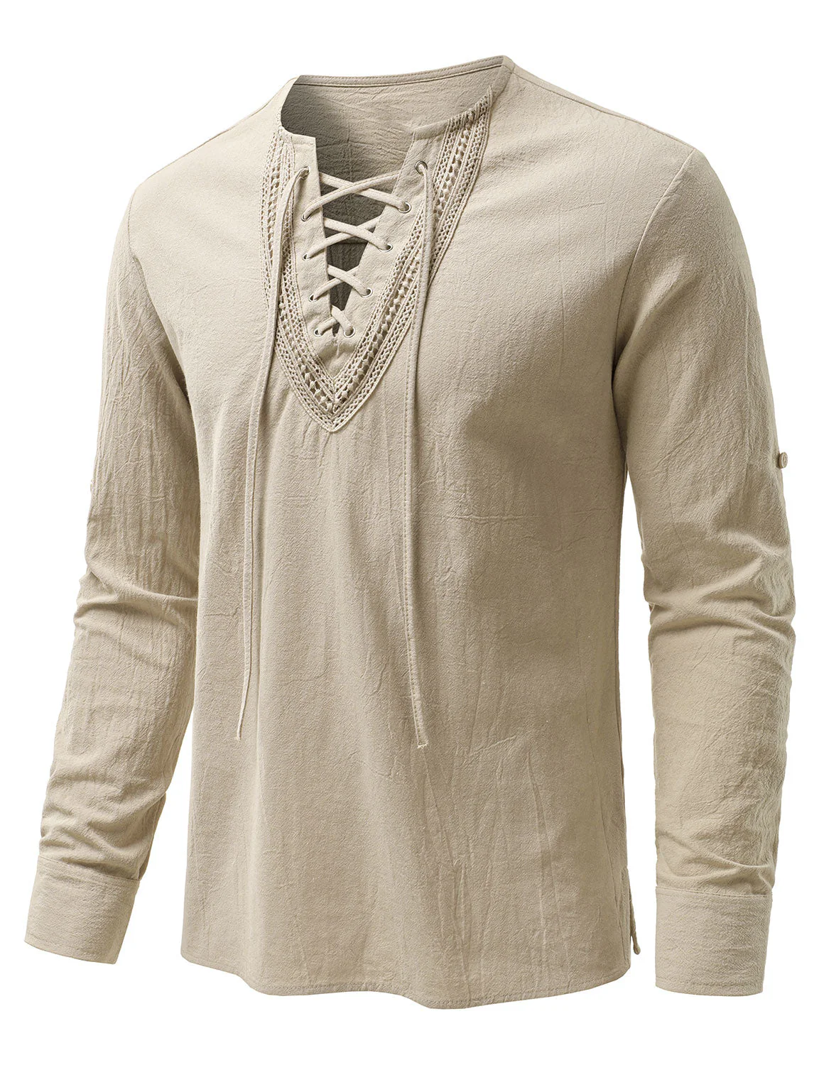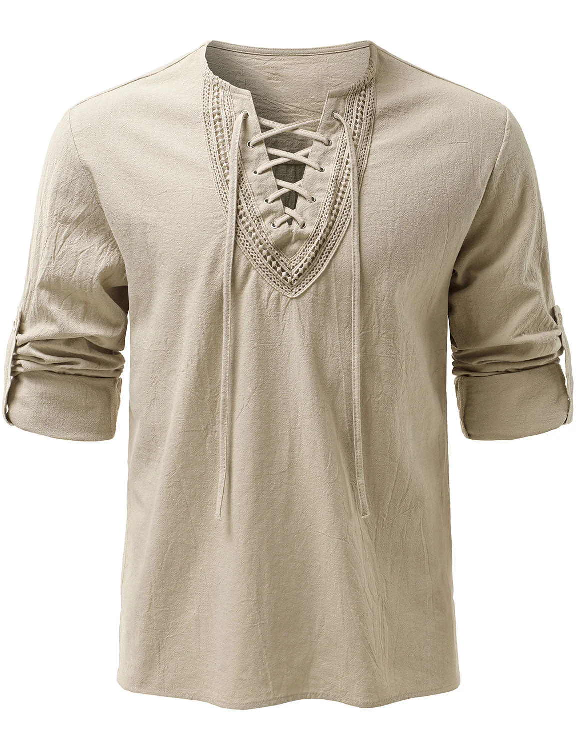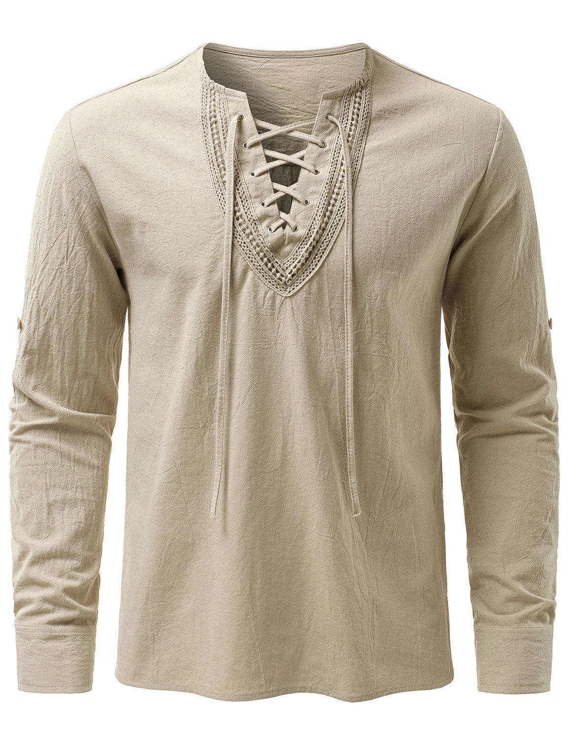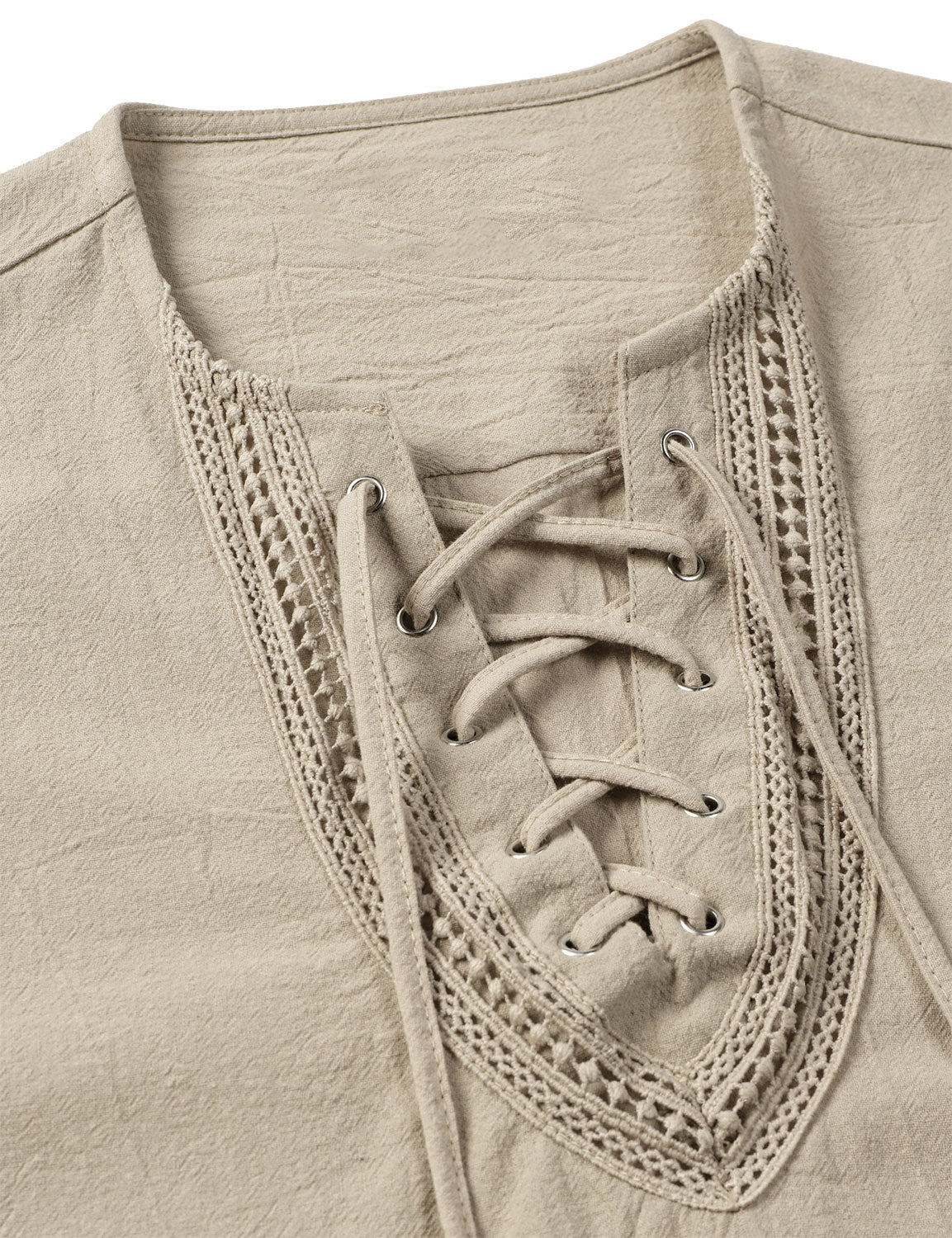 - Motif : style pirate médiéval/chemises rétro Renaissance/tunique viking/manches retroussables/col en V en dentelle fantaisie