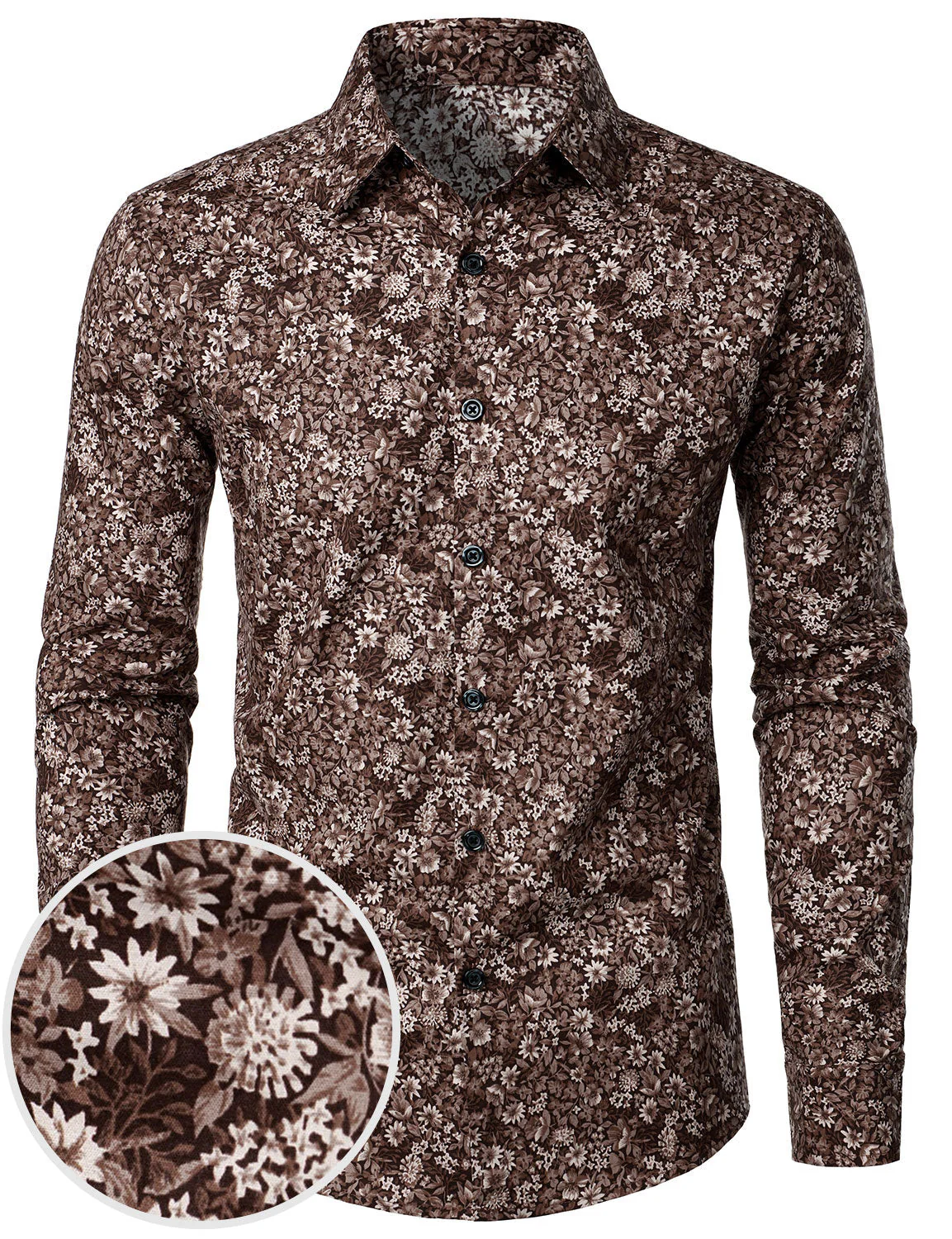 Soyez le premier à laisser votre avis sur “Chemise boutonnée à manches longues en coton à motif floral marron vintage pour homme”