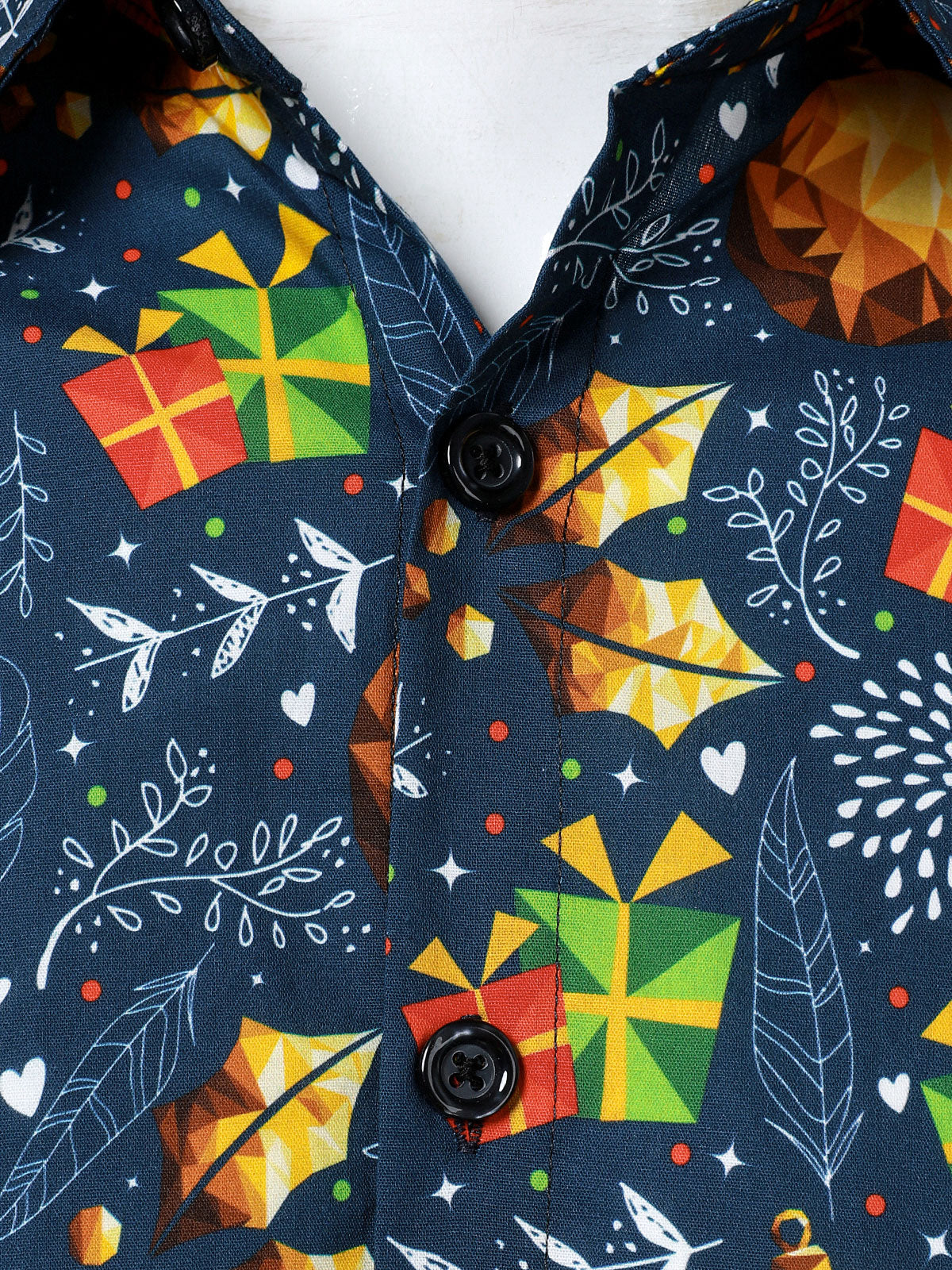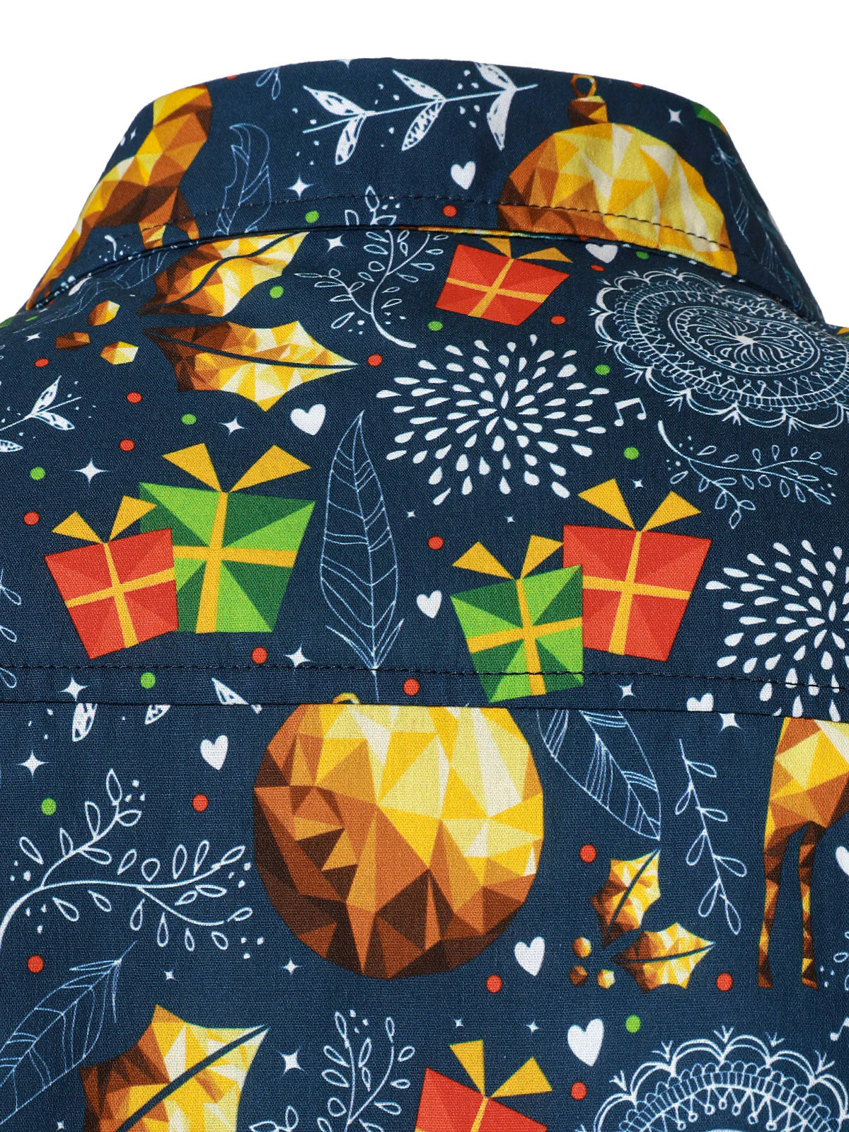 Chemise à manches longues à boutons pour homme avec imprimé ornements de Noël et sapins
