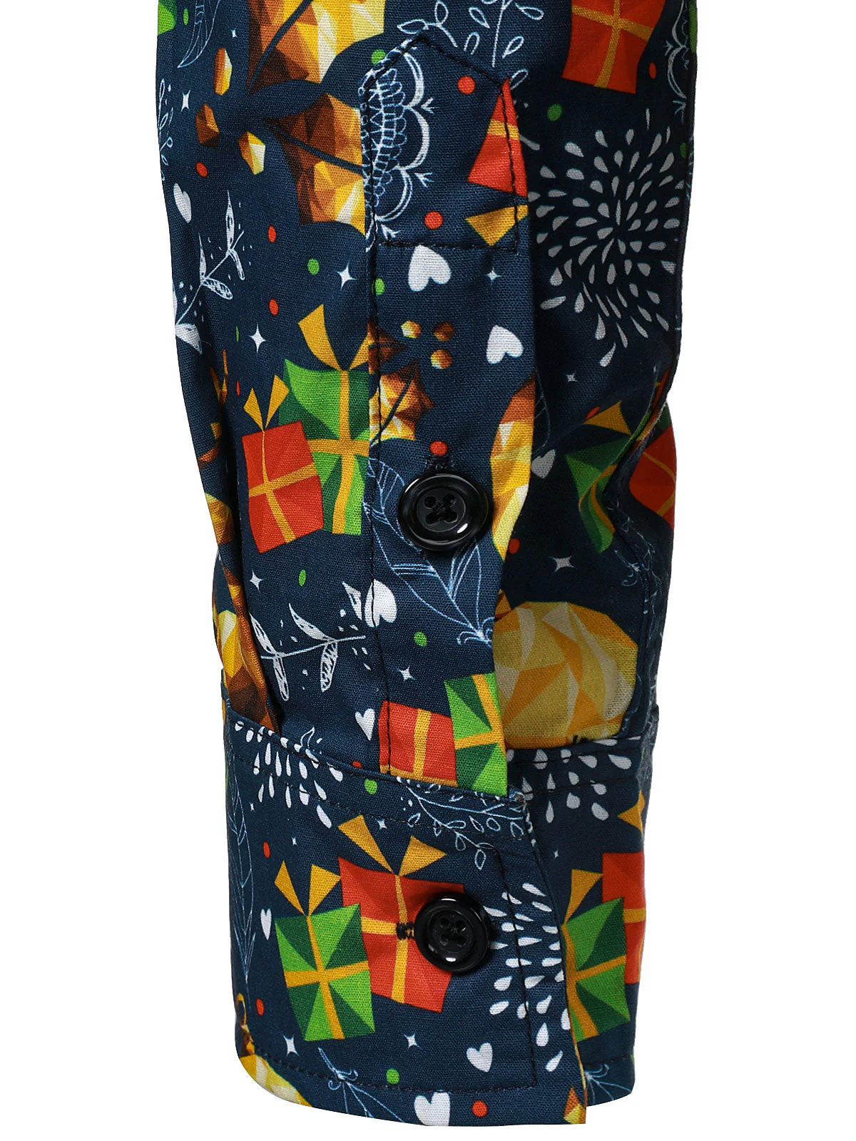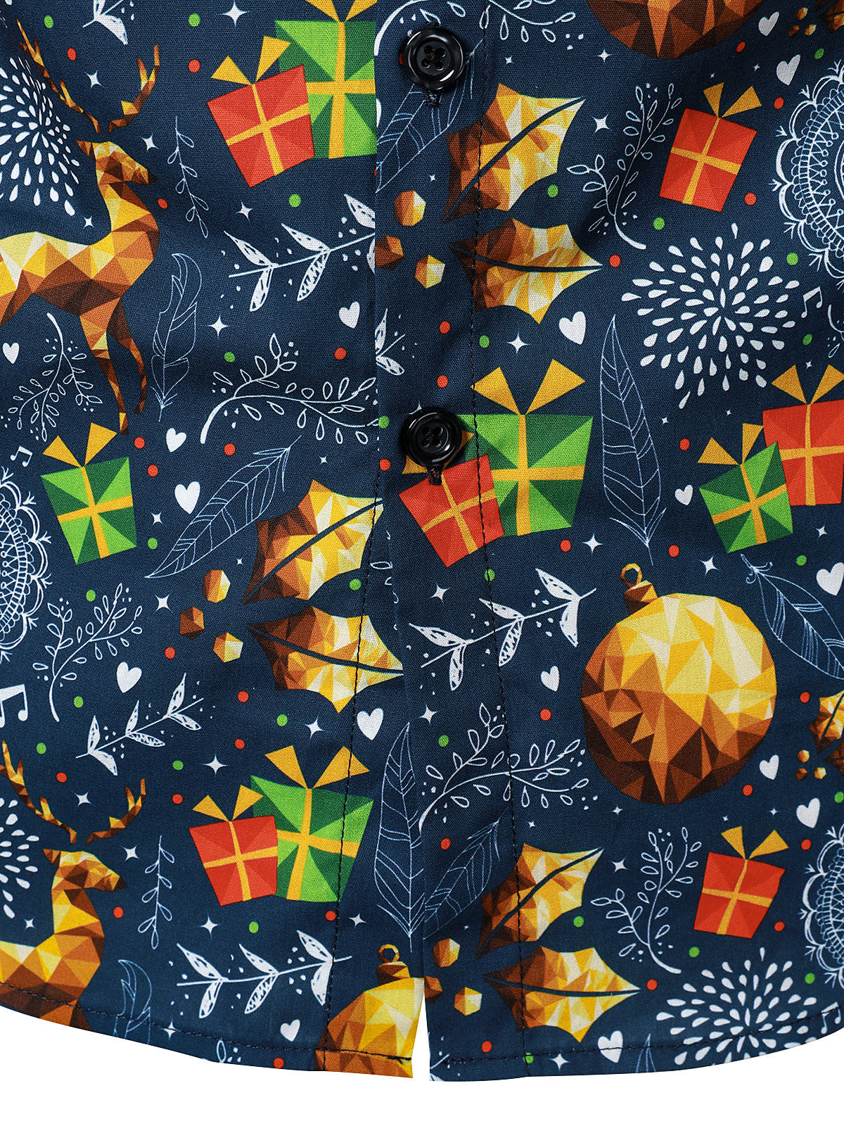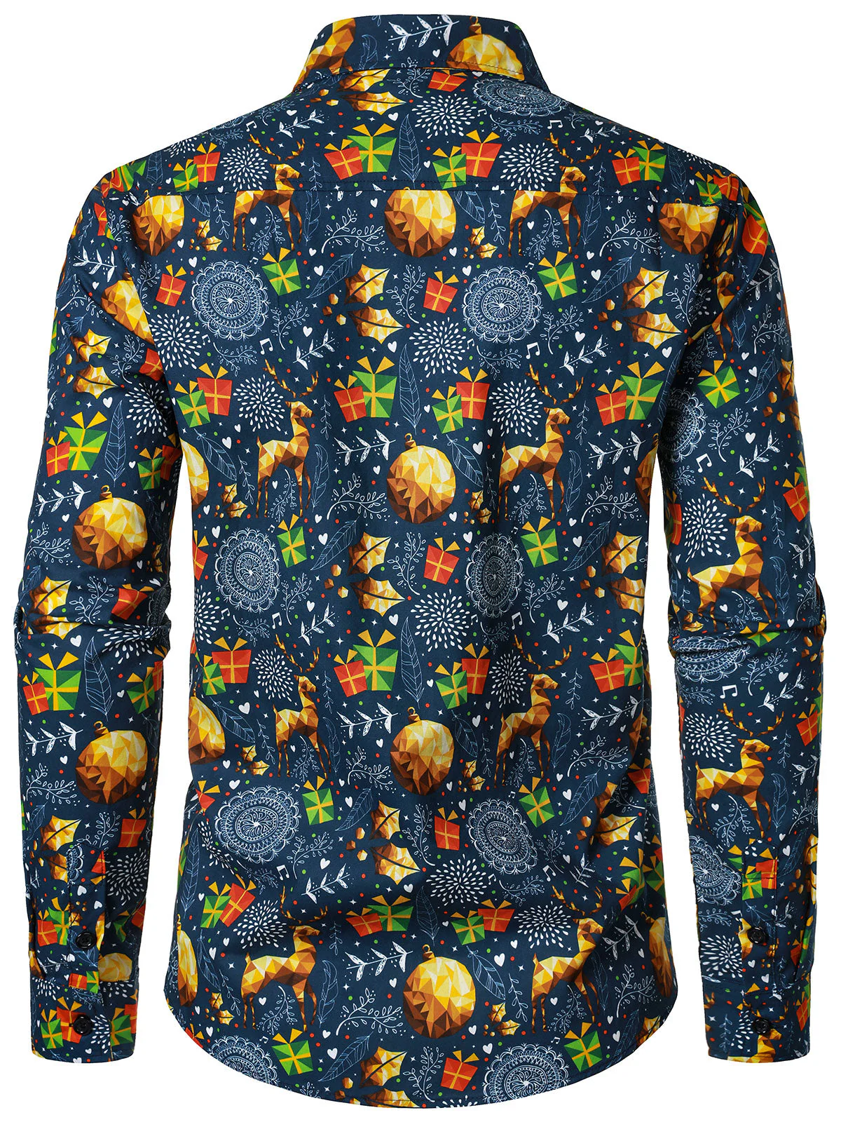 Chemise de Noël bleue pour homme à manches longues imprimé festif avec renne