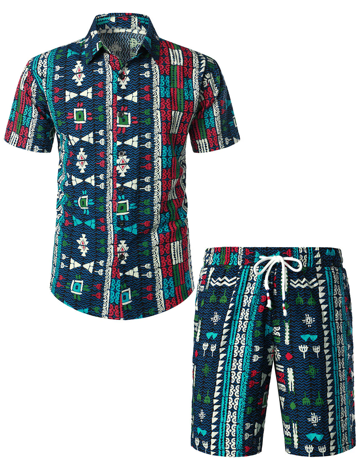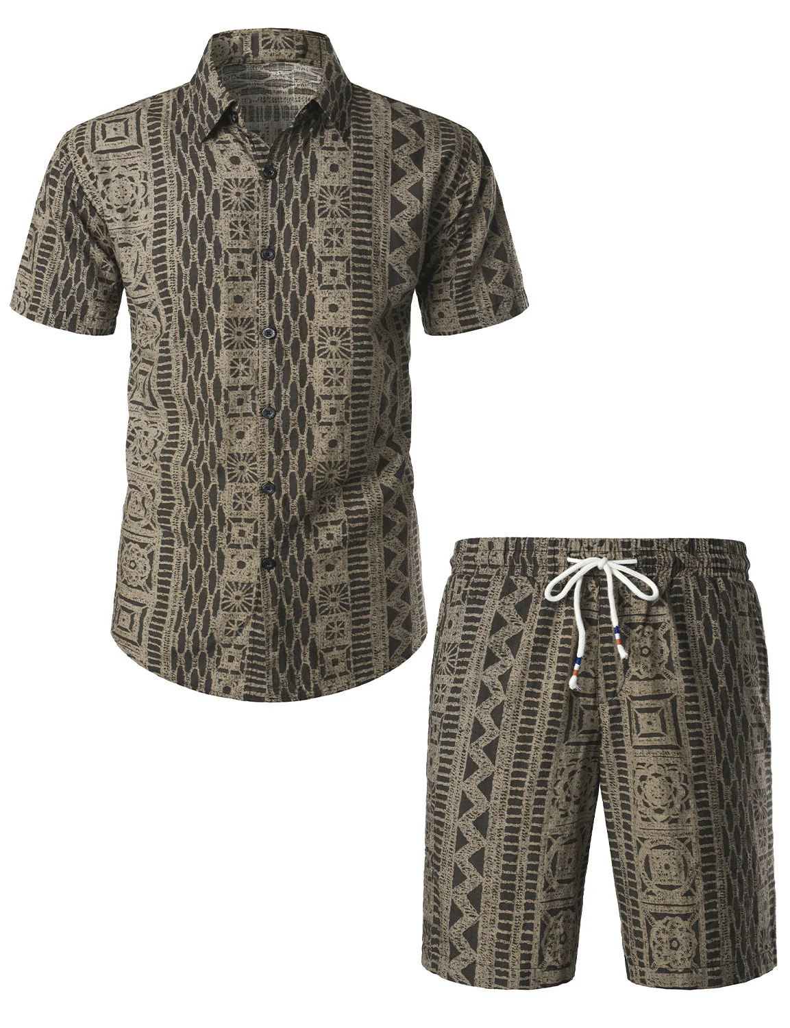 Ensemble chemise et short assortis à manches courtes Boho vintage pour hommes