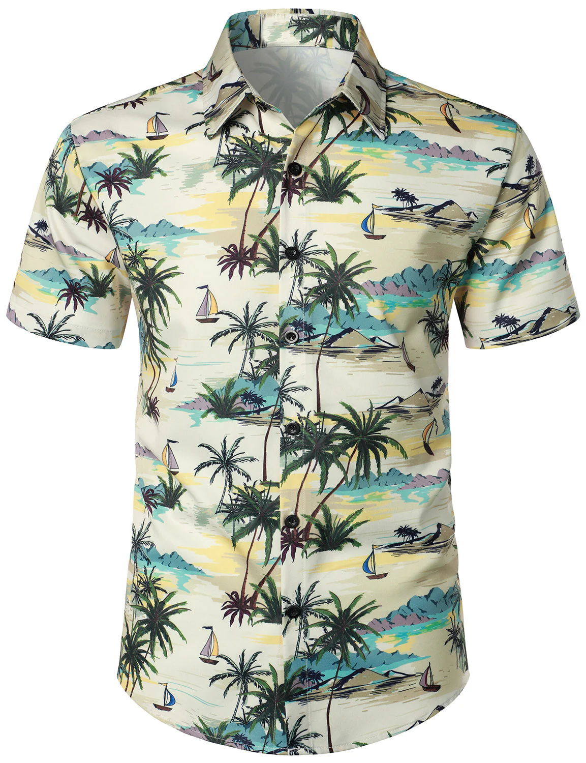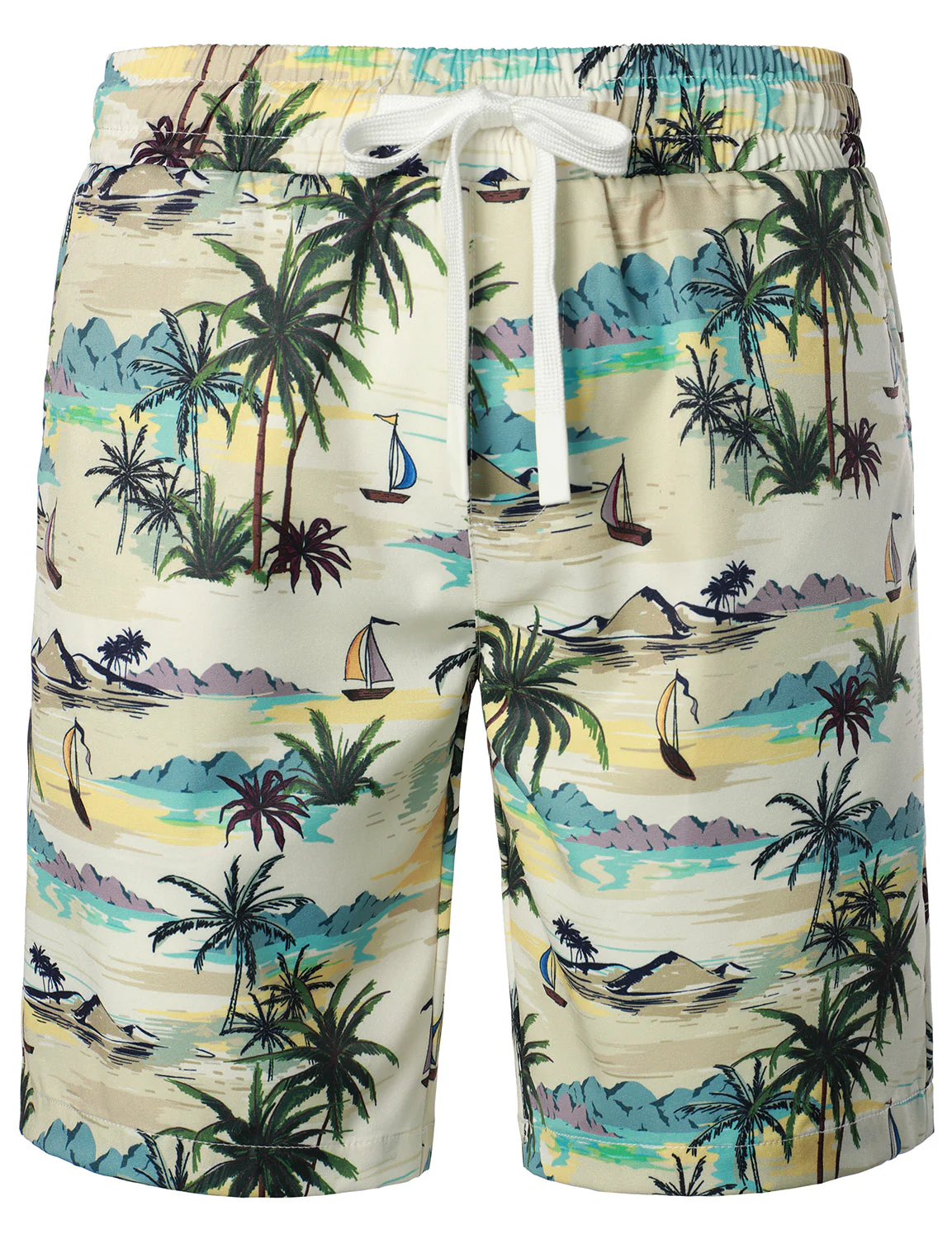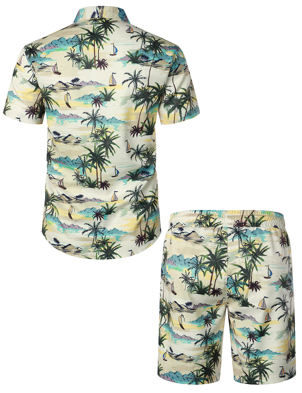 Ensemble chemise et short assortis pour hommes, palmier Beige Island, décontracté, hawaïen, été