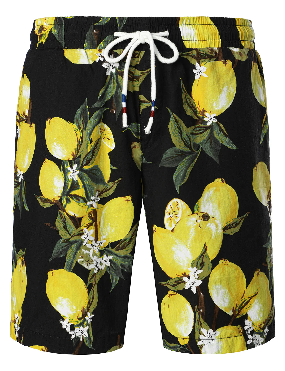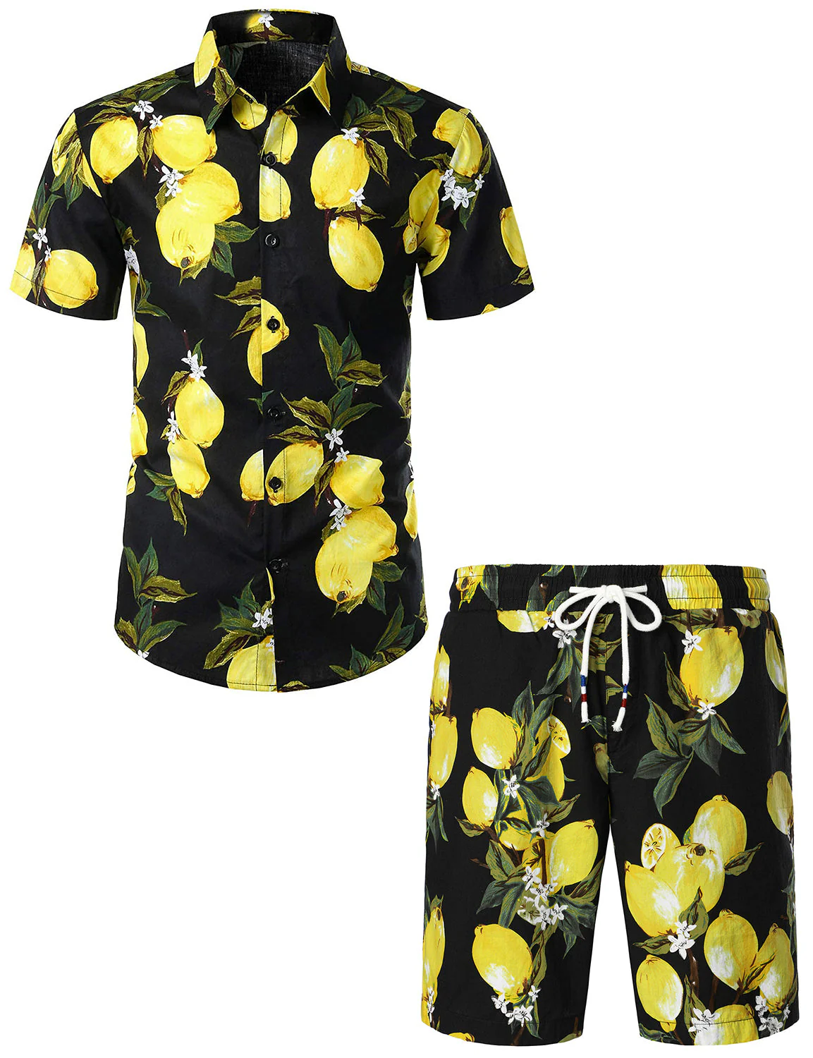 Ensemble chemise et short hawaïen en coton imprimé citron pour hommes, fruits tropicaux
