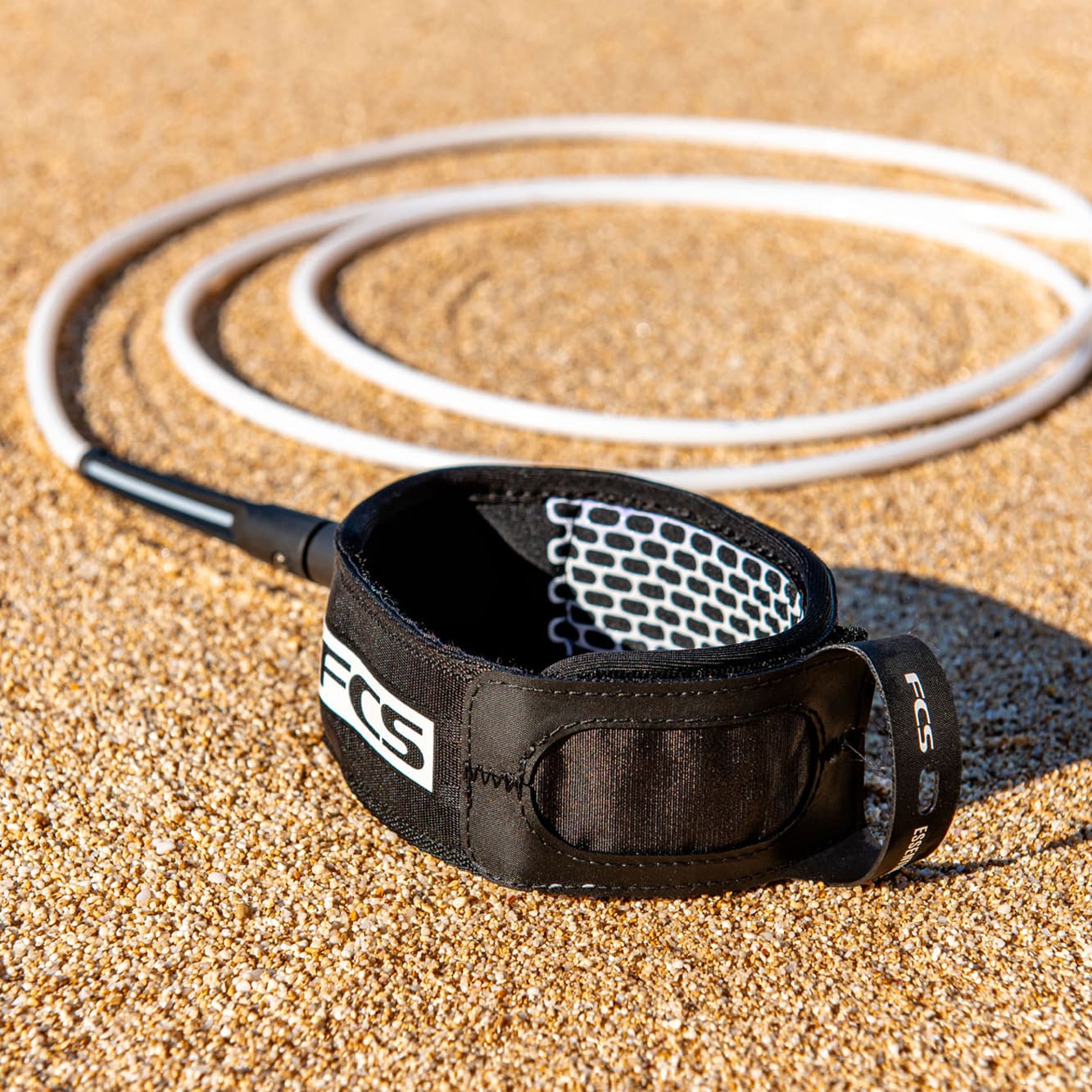 Leash de surf FCS all Round (7mm/0.28″ Diameter). Pour des vagues de 60 cm à 2,10 m. Essential series – Trusted strength and confort.
