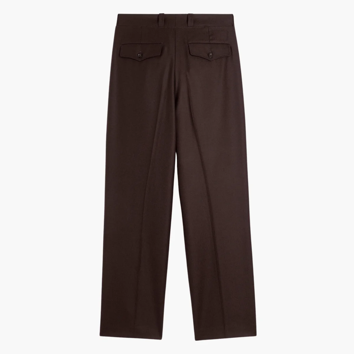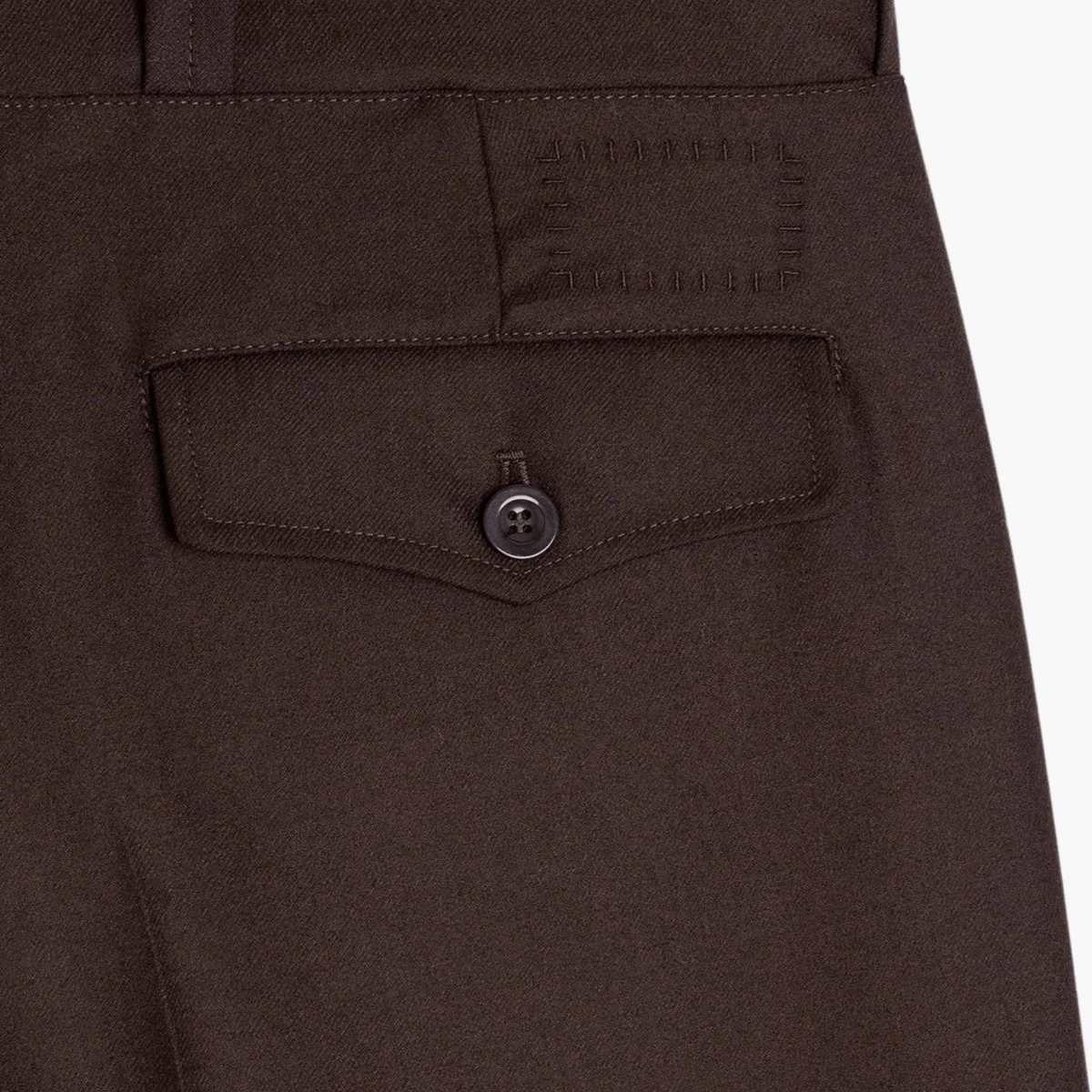 Le French Military Pants – Marron Foncé revisite les pantalons militaires français des années 1950 dans une version raffinée, responsable et contemporaine. Conçu dans une flanelle de laine recyclée (320 g/m²) issue de deadstock de grandes maisons de luxe, il allie authenticité, durabilité et élégance discrète.