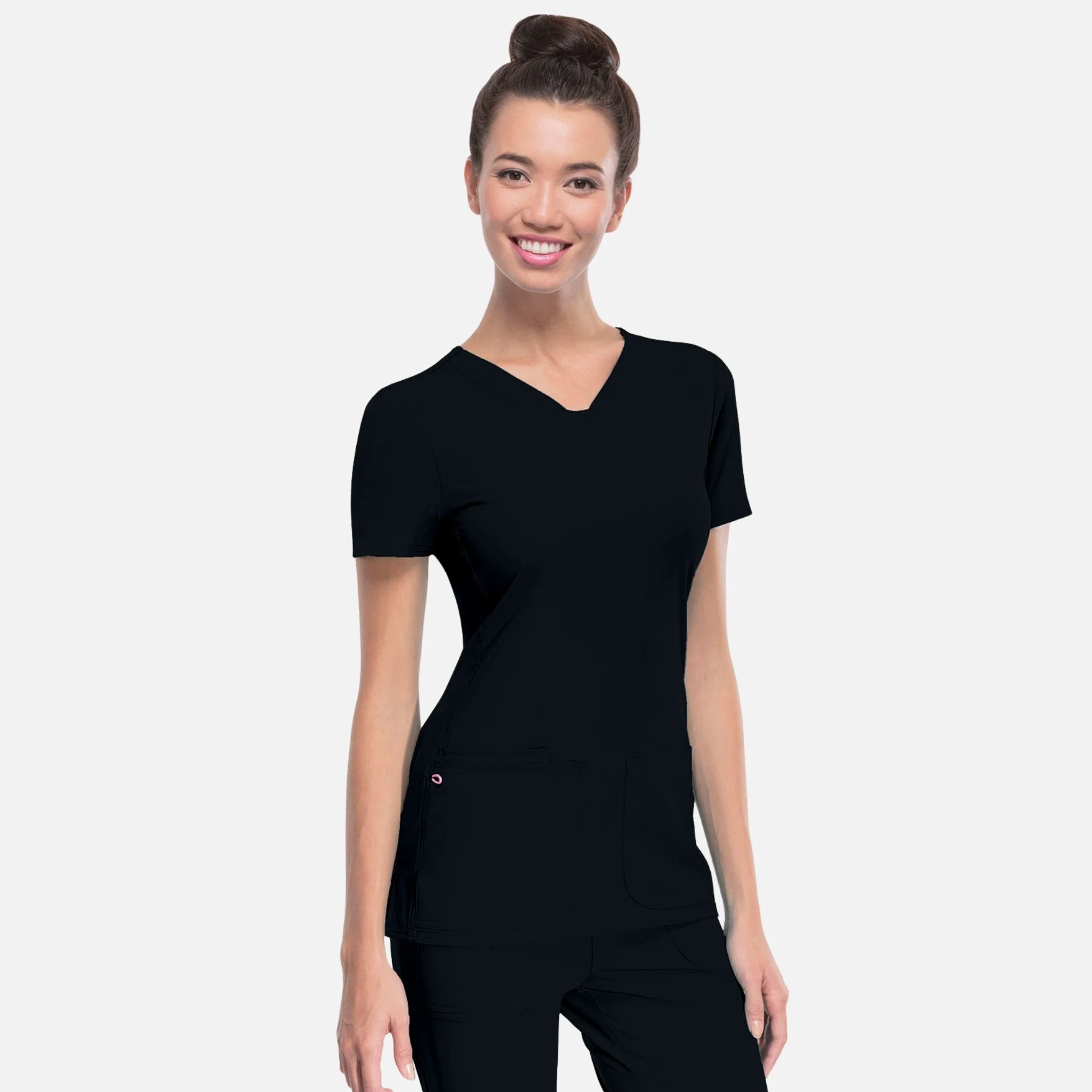 Le haut d’uniforme col en V offre une coupe contemporaine cintrée avec un col en V, idéale pour les professionnelles de la santé recherchant style et fonctionnalité. Dotée de trois poches pratiques, dont une intérieure, elle intègre des détails pensés pour le quotidien, tels qu’une boucle élastique rose pour badge et un œillet discret pour les écouteurs. Les coutures princesse à l’avant et à l’arrière, ainsi que les fentes latérales, assurent un ajustement ergonomique et une liberté de mouvement optimale.