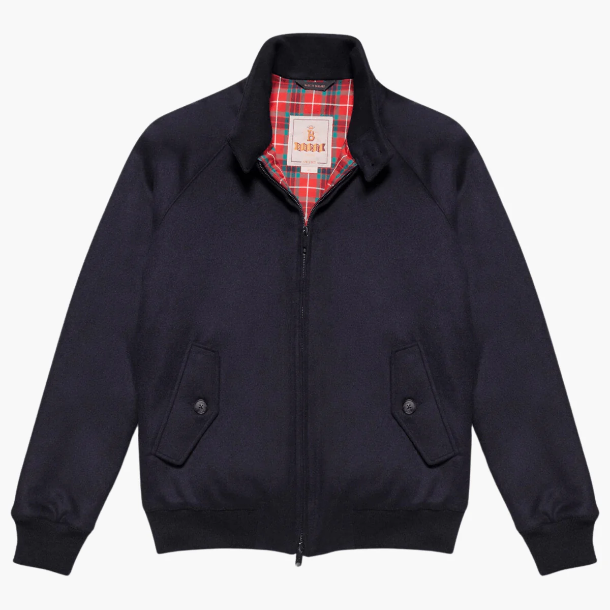 Le Melton G9 – Deep Blue est la version premium du légendaire blouson Harrington G9. Confectionné dans un mélange noble de laine vierge, polyamide et cachemire, il offre chaleur, confort et élégance tout en conservant la silhouette iconique du modèle original.