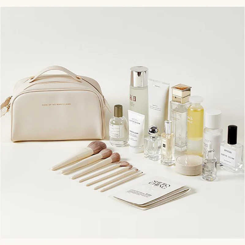 Sac cosmétique à Double fermeture éclair avec grande capacité